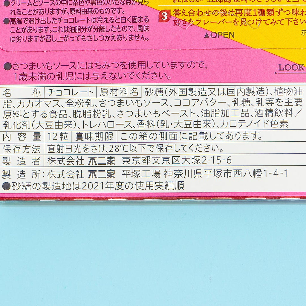 Roasted sweet potatoes are special Autumn treats for people in Japan! Enjoy the rich and sweet taste of roasted Japanese sweet potatoes while indulging in this box of chocolates. It has the taste of two different sweet potato varieties including "Beniharuka" from Hokkaido and "Gorojima Kintoki" from Tokushima.
