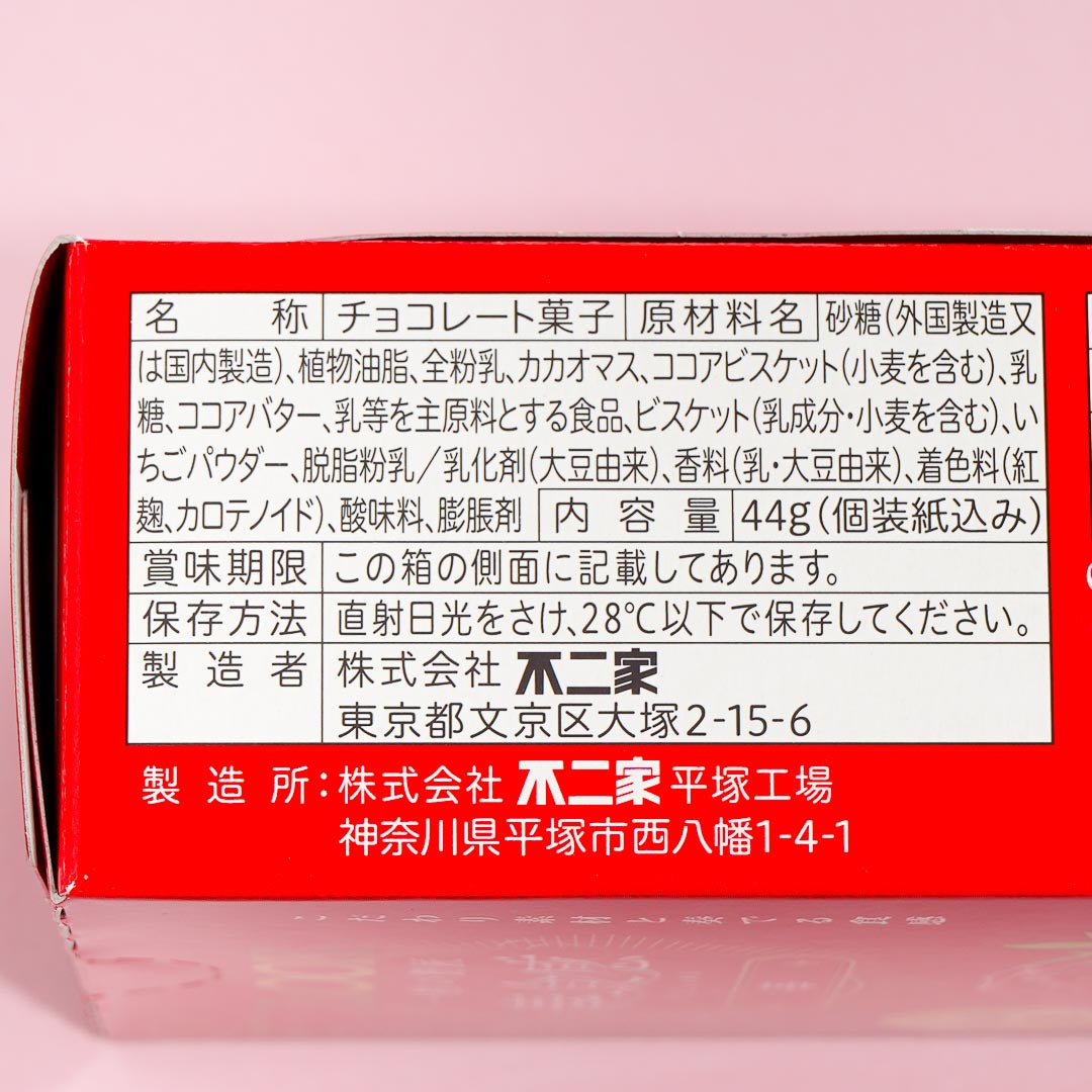 Have a bite of this delicious sweet treat! Inside a thin layer of delicious milk chocolate, there's a strawberry whipped cream made with Japanese Amaou strawberries, bittersweet cocoa biscuits, and white chocolate chunks. The combination of creamy and crunchy textures makes this a luxurious dessert.