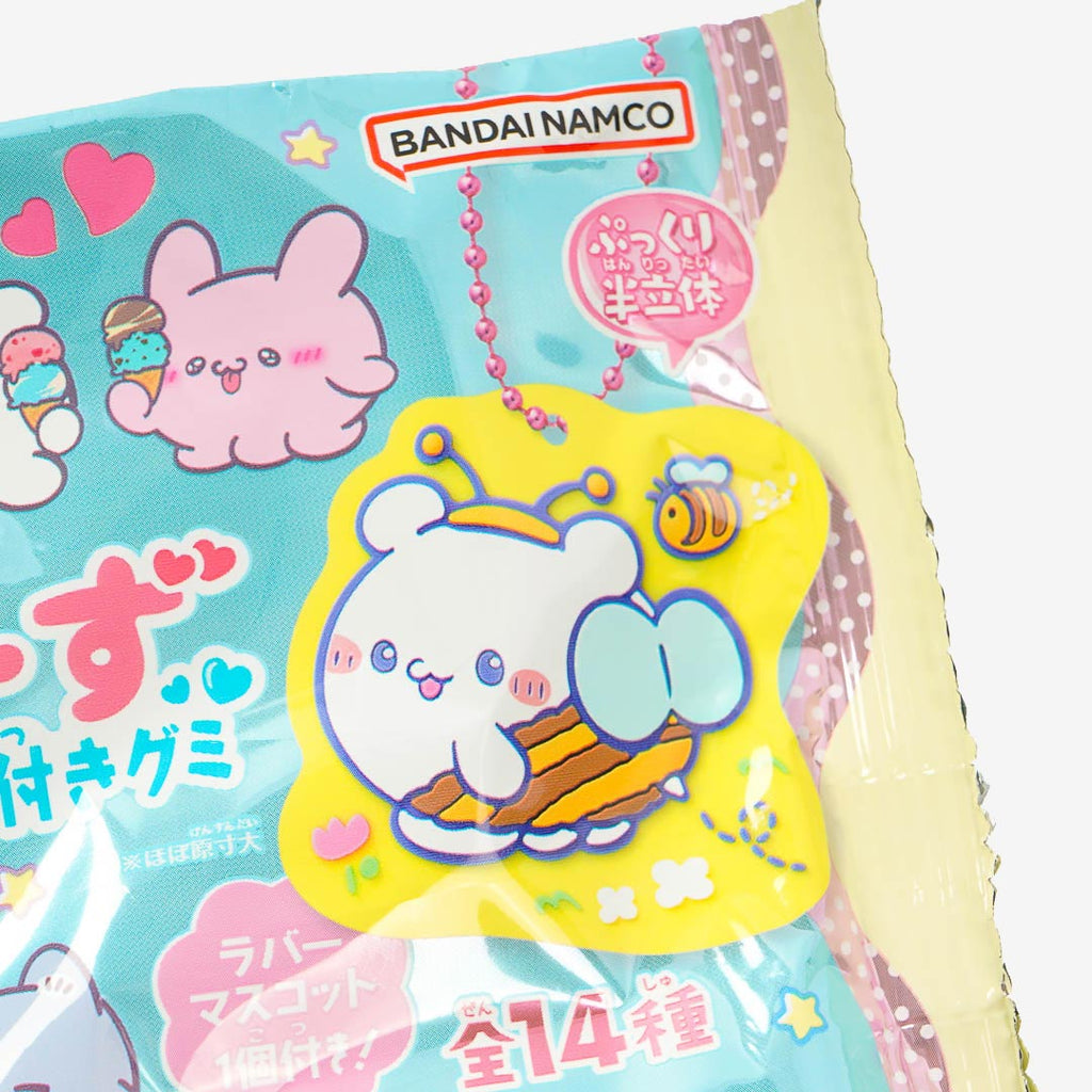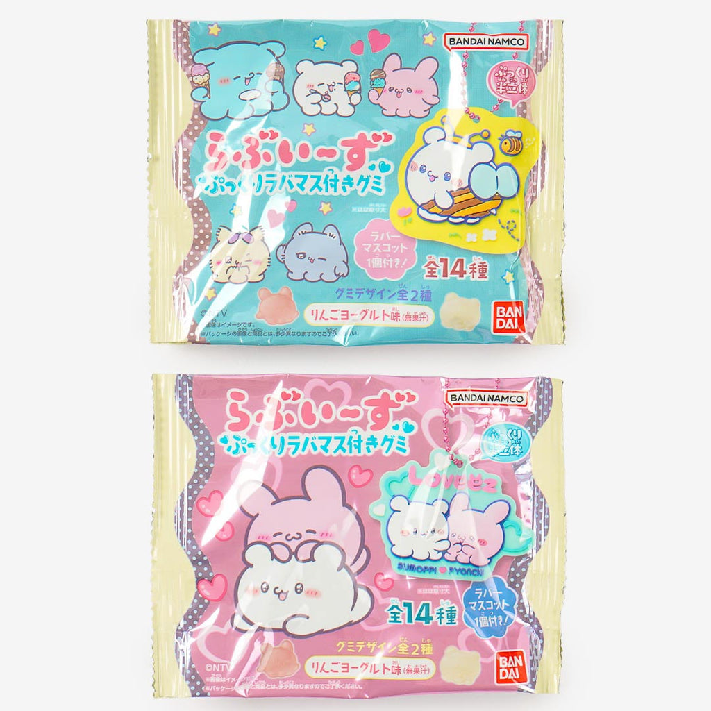 Snack on this pack of sweet gummy candy showcasing the cute Looveez characters Sumoppi and Pyonschi! Inside the pack you'll find a collectible Looveez charm. You'll get a random charm from a set of 14 different designs when you order. Attach it to your favorite bag with its removable ball chain!