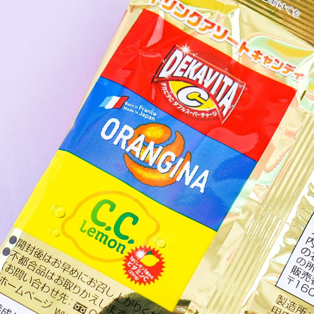 Have a taste of Suntory Japan's different drinks in candy form! These hard candies are flavored like Suntory's Dekavita C energy drink, Orangina juice drink, and CC Lemon soft drink.