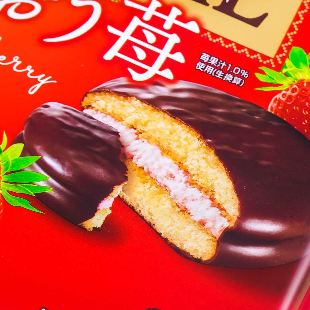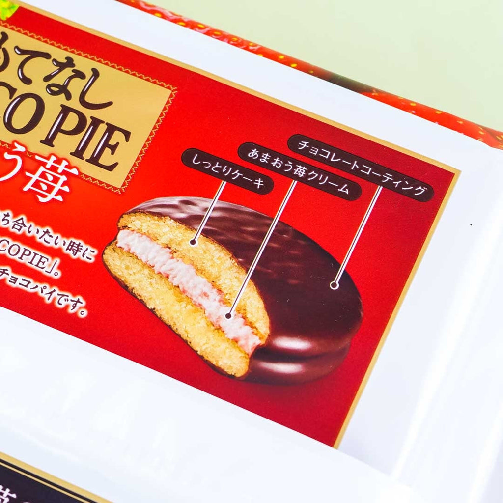 • A box of chocolate-coated marshmallow pies with an Amaou strawberry cream center