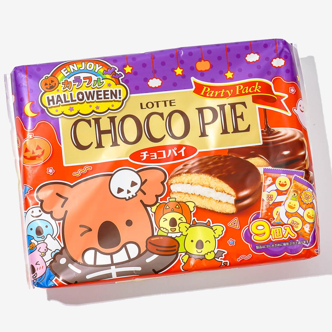 Share this limited-edition pack of choco pies at your kawaii Halloween party! It features fun prints of Lotte snack characters dressed up for the spooky season. Each individually-wrapped choco pie is also decorated with Halloween-themed prints.