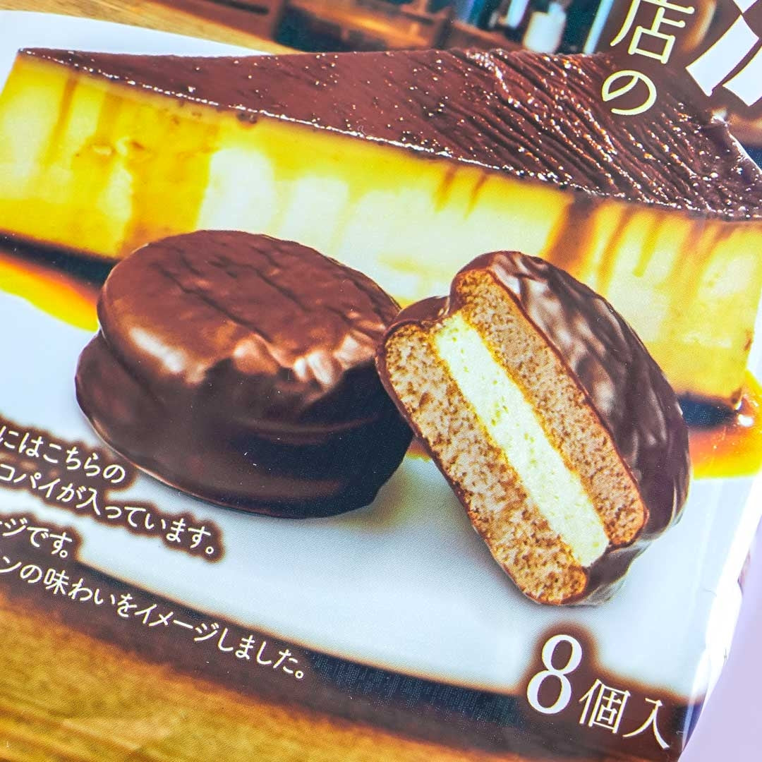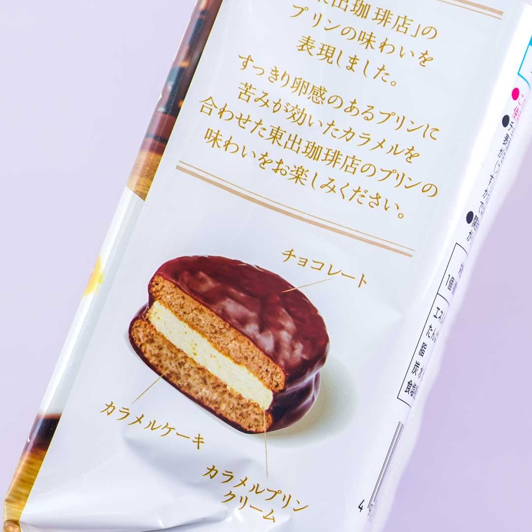 A pack of limited-edition mini chocolate pie sandwiches that taste like Higashide Coffee Shop’s coffee pudding dessert