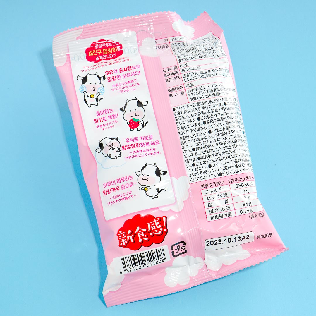 These soft pillowy sweets are shaped like beans! Savor the taste of fresh strawberries and sweet milk as you try these candies! The fluffy pink treats also come in a convenient pouch that has prints of a cow and clouds.