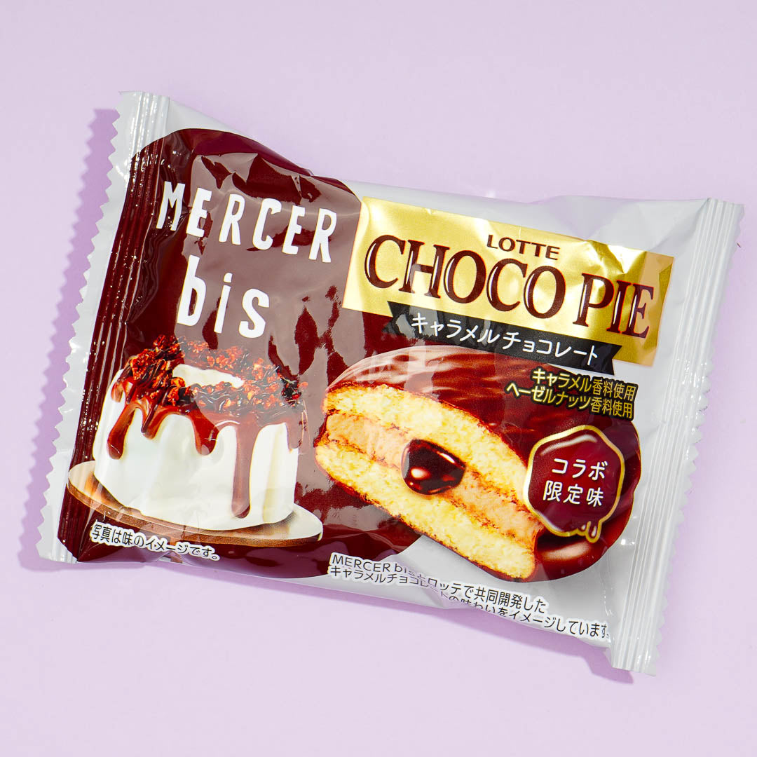 Savor this special edition of Lotte Choco Pie inspired by the famous Raw Caramel Chiffon Cake that’s made by the world-renowned pastry shop in Shibuya called “MERCER bis.” In between the choco-covered soft pie layers is a fragrant hazelnut praline paste, bittersweet caramel cream, and bitter caramel chocolate sauce.