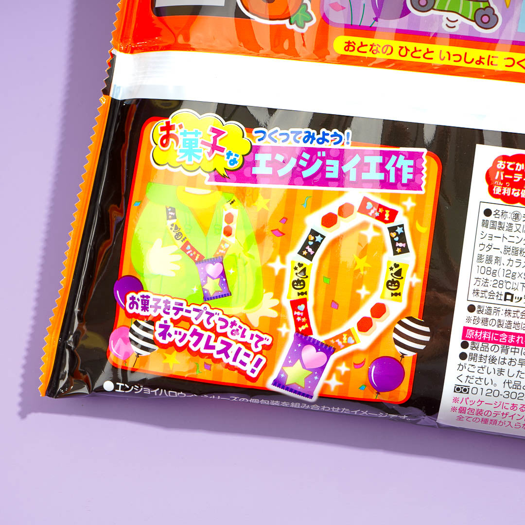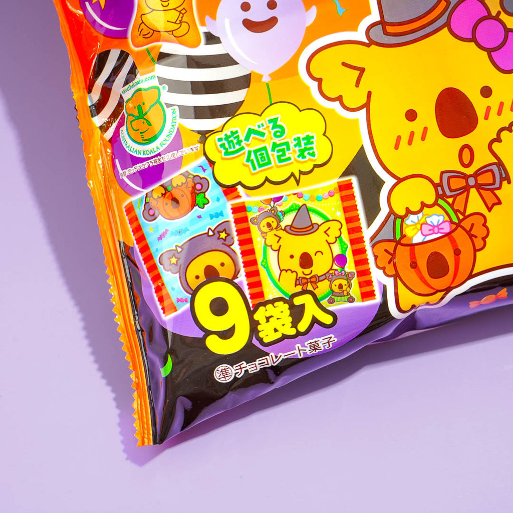 This Halloween-themed pack of koala-shaped cookies filled with chocolate is perfect for sharing with friends on the spookiest day of the year. It's covered in prints of Lotte and Calbee characters all dressed to scare! Each small bag in the pack also features Halloween prints.