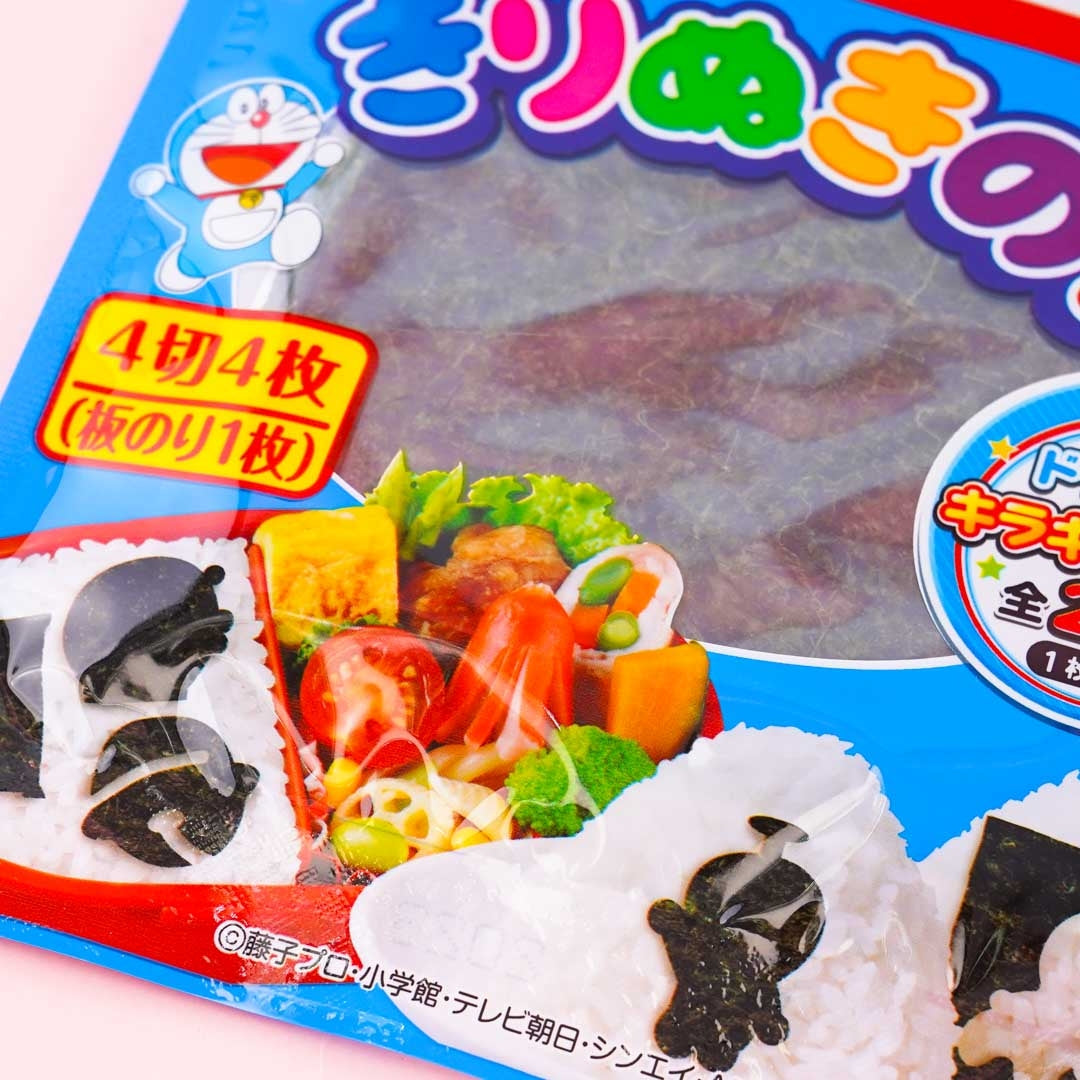 Decorate your bento boxes with this pack of nori sheets! It features prints of Doraemon. Each sheet has a cut-up part shaped like a Doraemon character. This pack of nori sheets also comes with a free sticker randomly selected from a set of 20!