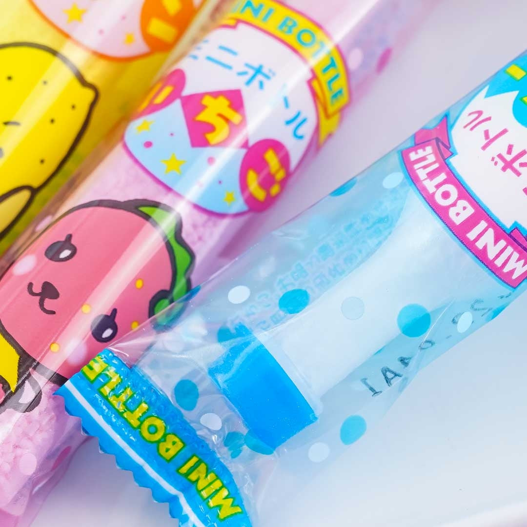 • A pack of fizzy ramune-flavored powdered candy in a small bottle