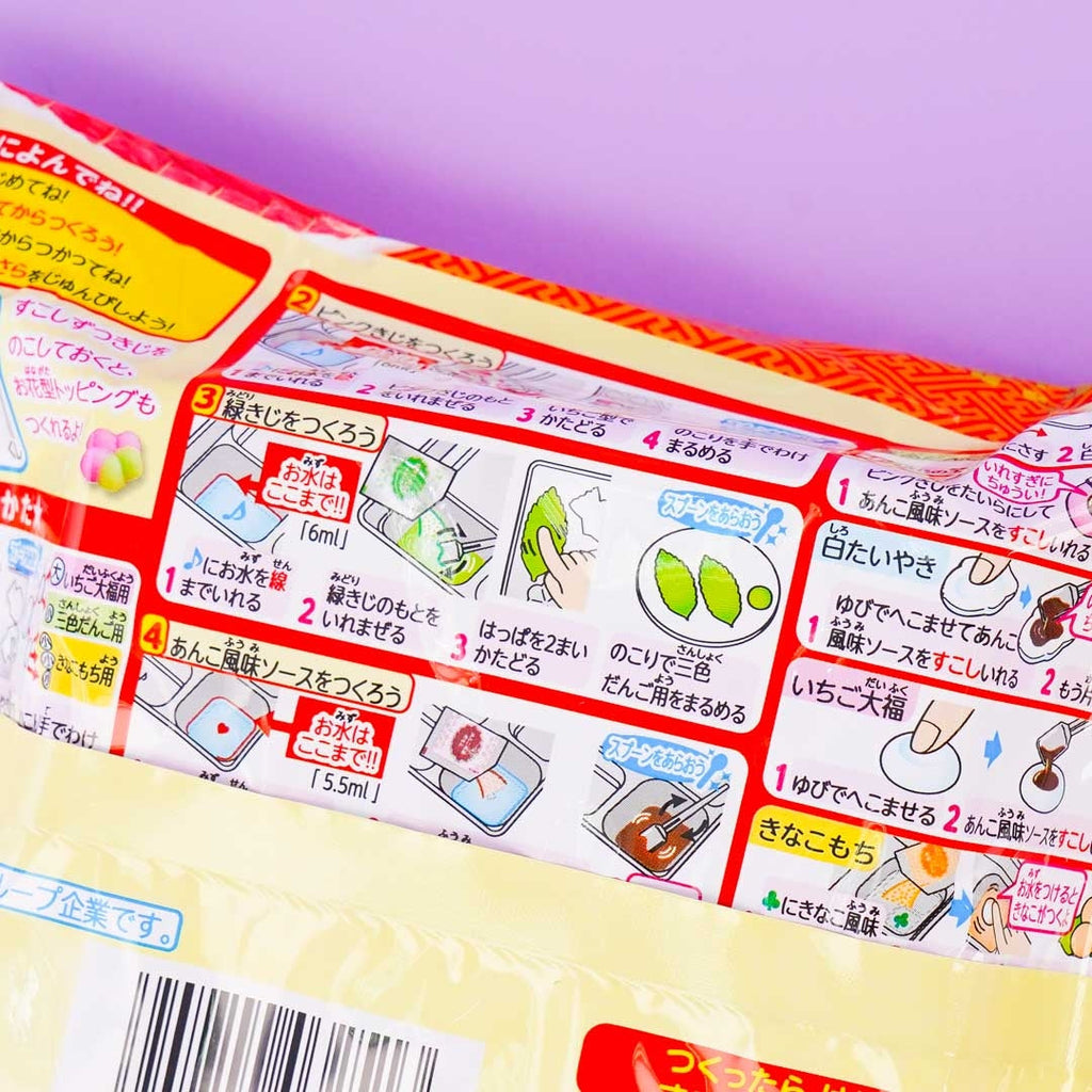 Play pretend and be an odango shop owner for a day with this DIY candy kit! It comes with powder packets, two molds, a mini skewer, and a tiny mixing spoon. Simply dissolve included powder packets and place them on their respective molds. Have fun creating miniature candy versions of popular wagashi or traditional Japanese confections like kinako dango, strawberry daifuku, hanami dango, sakura mochi, and taiyaki!