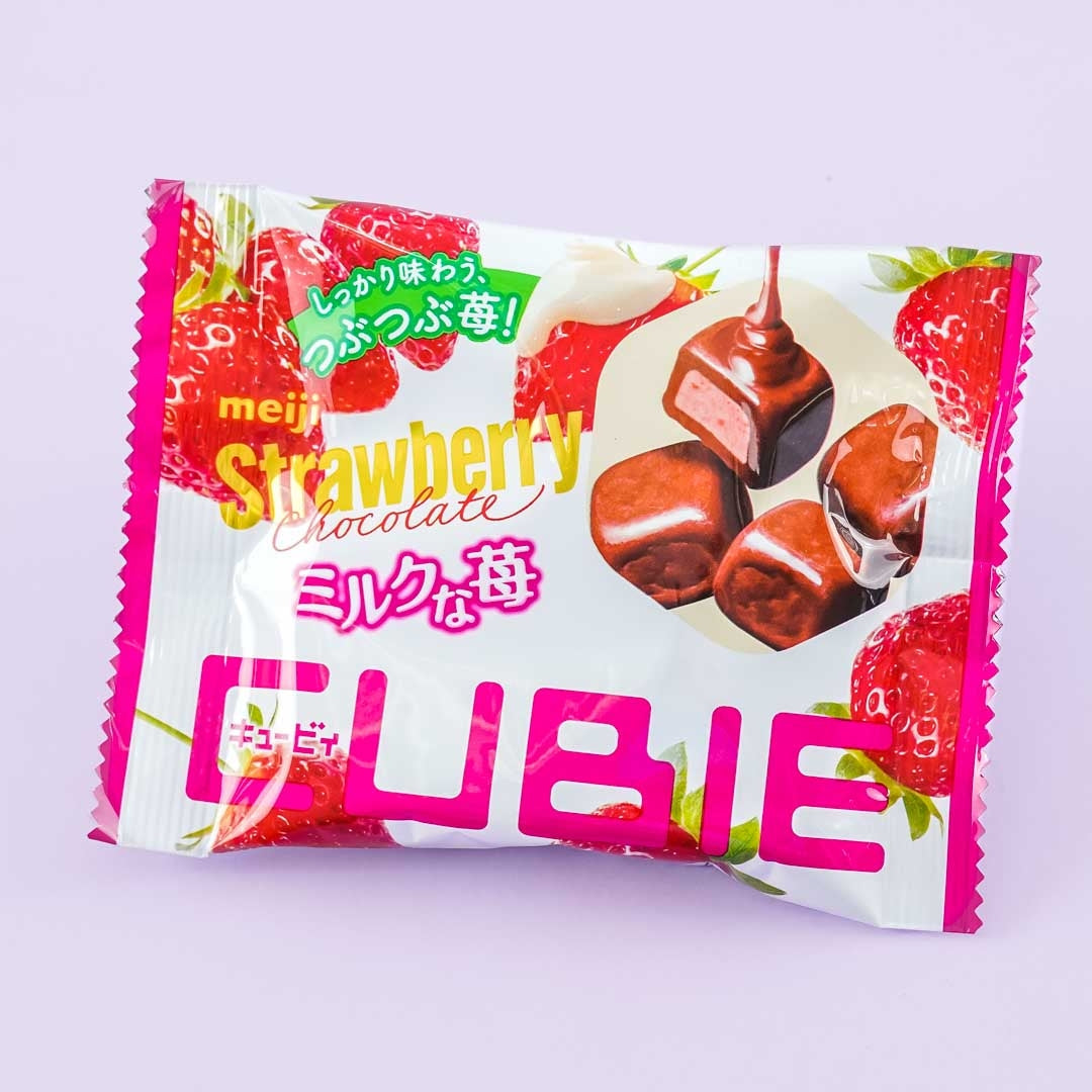 • A pack of bite-sized milk chocolates filled with creamy strawberry
