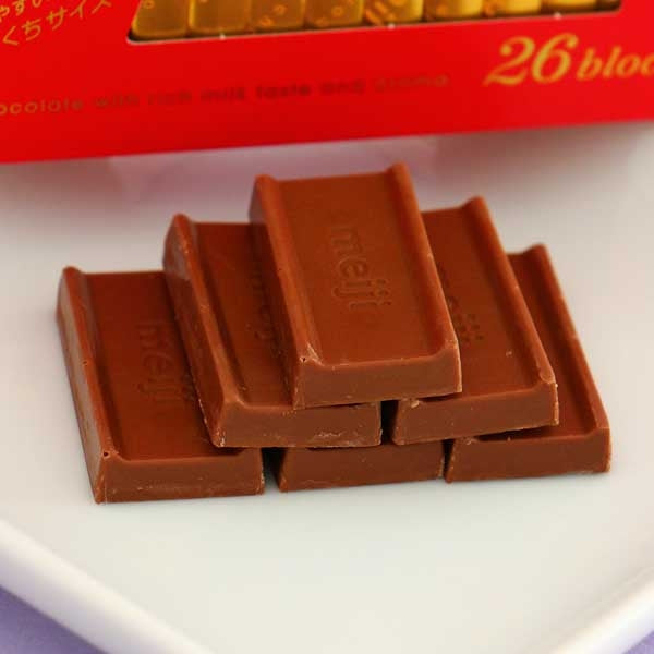 Japan's most famous confectionery company Meiji, has been producing famous chocolate bars since 1926. This Meiji milk chocolate box has 26 individually wrapped milk chocolate blocks with the "Meiji" logo on each one. This chocolate is fine quality with rich milk taste and aroma. This popular chocolate is a perfect gift for any chocolate lover!
