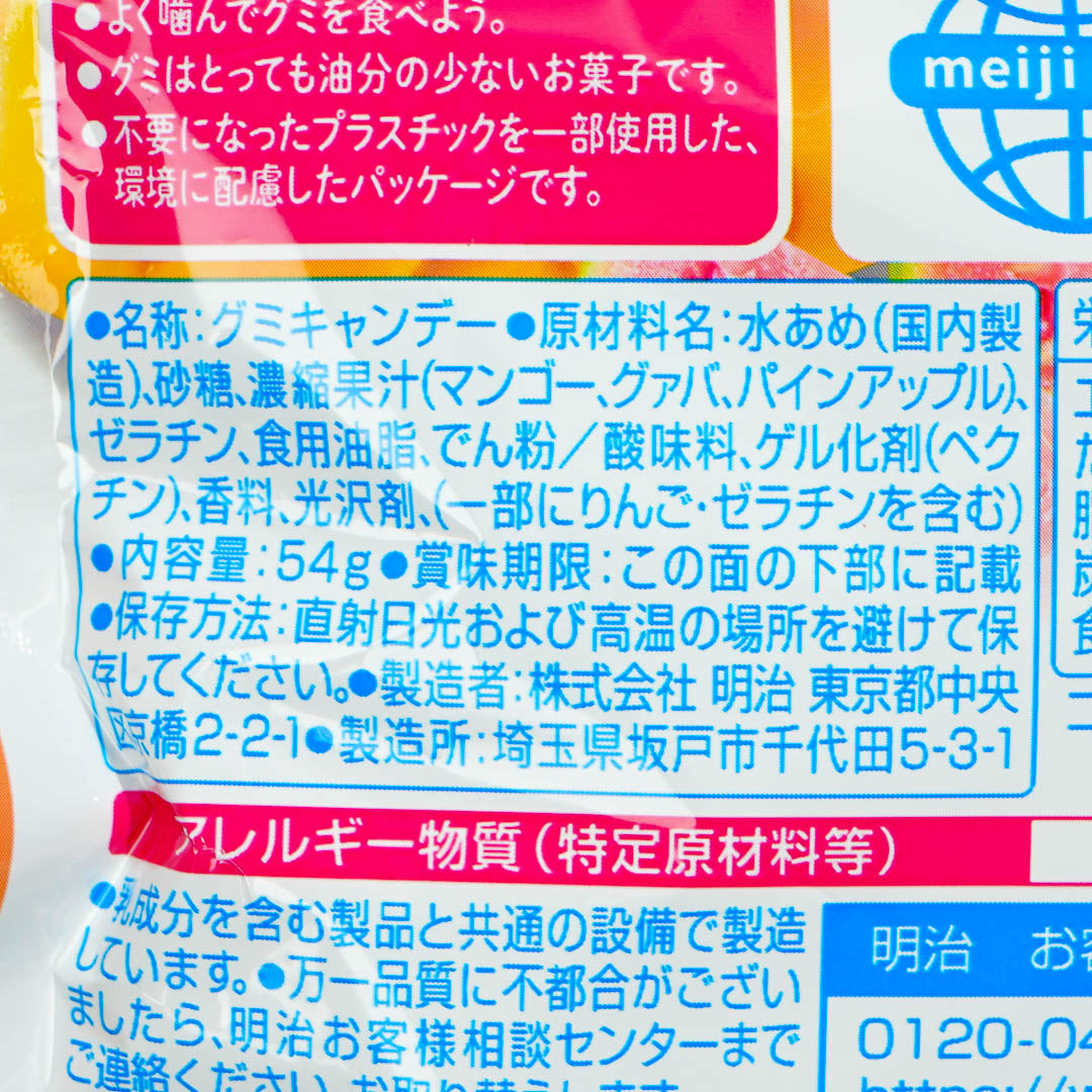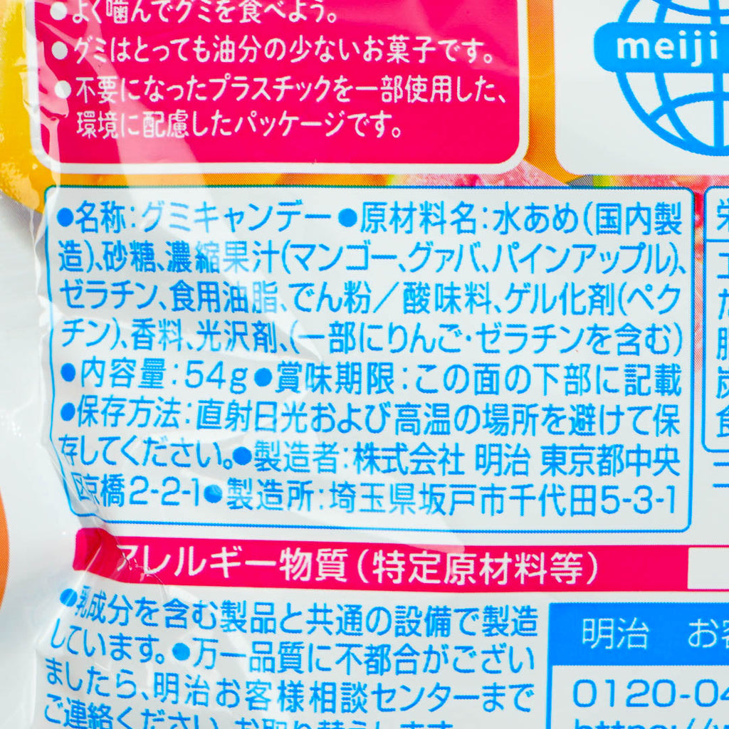Enjoy the rich and refreshing taste of these gummy candies made with 100% fresh tropical fruit juice! Soft and chewy, these treats have a combination of mango, pink guava, and pineapple flavors.