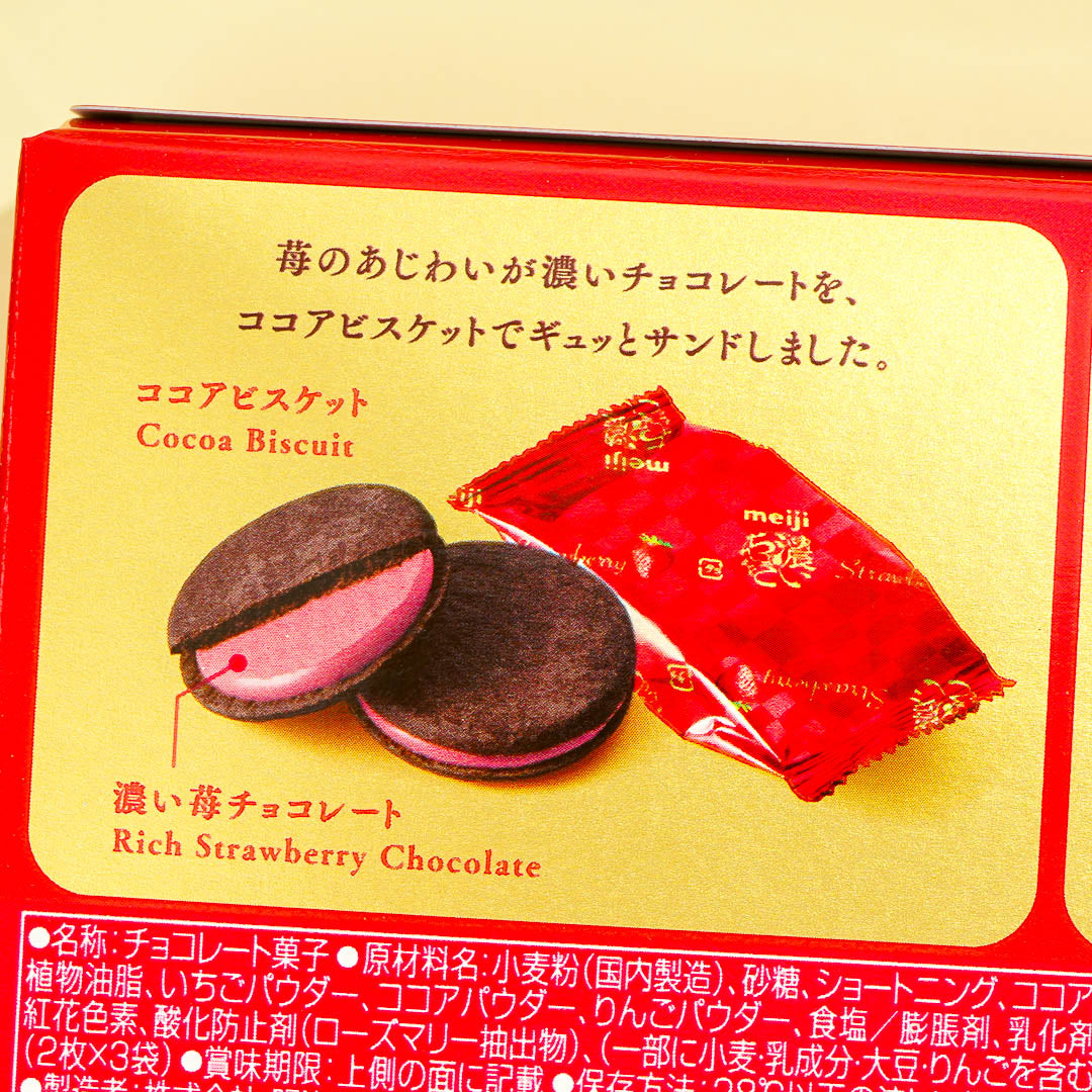 Pair this box of luxurious chocolate cookies with your favorite drink. Each individually wrapped piece has rich strawberry chocolate sandwiched between cocoa biscuits! Share them with your friends