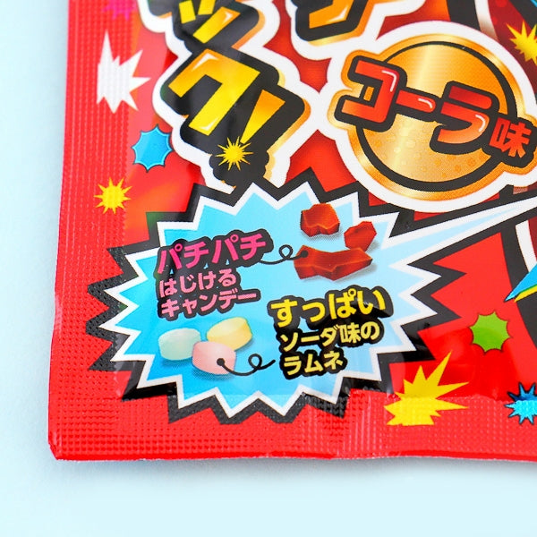 This exciting Pachi Pachi Panic package by Meisan includes cola popping candies mixed with ramune fizzy tablets! It mixes sweet and sour sensations in your mouth! The sour ramune candies add perfect balance to the popping sweet cola candies that start to fizz as soon as they touch your tongue! Are you ready to try this fun treat?