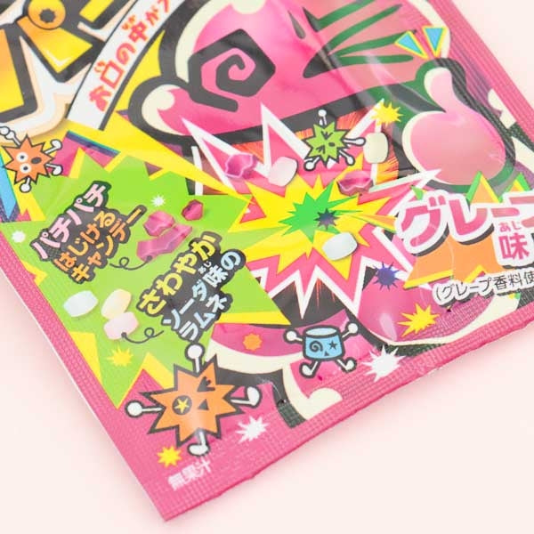 This exciting Pachi Pachi Panic package is filled with crunchy candy pieces that will start popping as soon as you place them into your mouth! The flavor of grape and ramune soda will make you want more and more - so yummy! Such a fun candy to enjoy with your friends & have a good laugh!