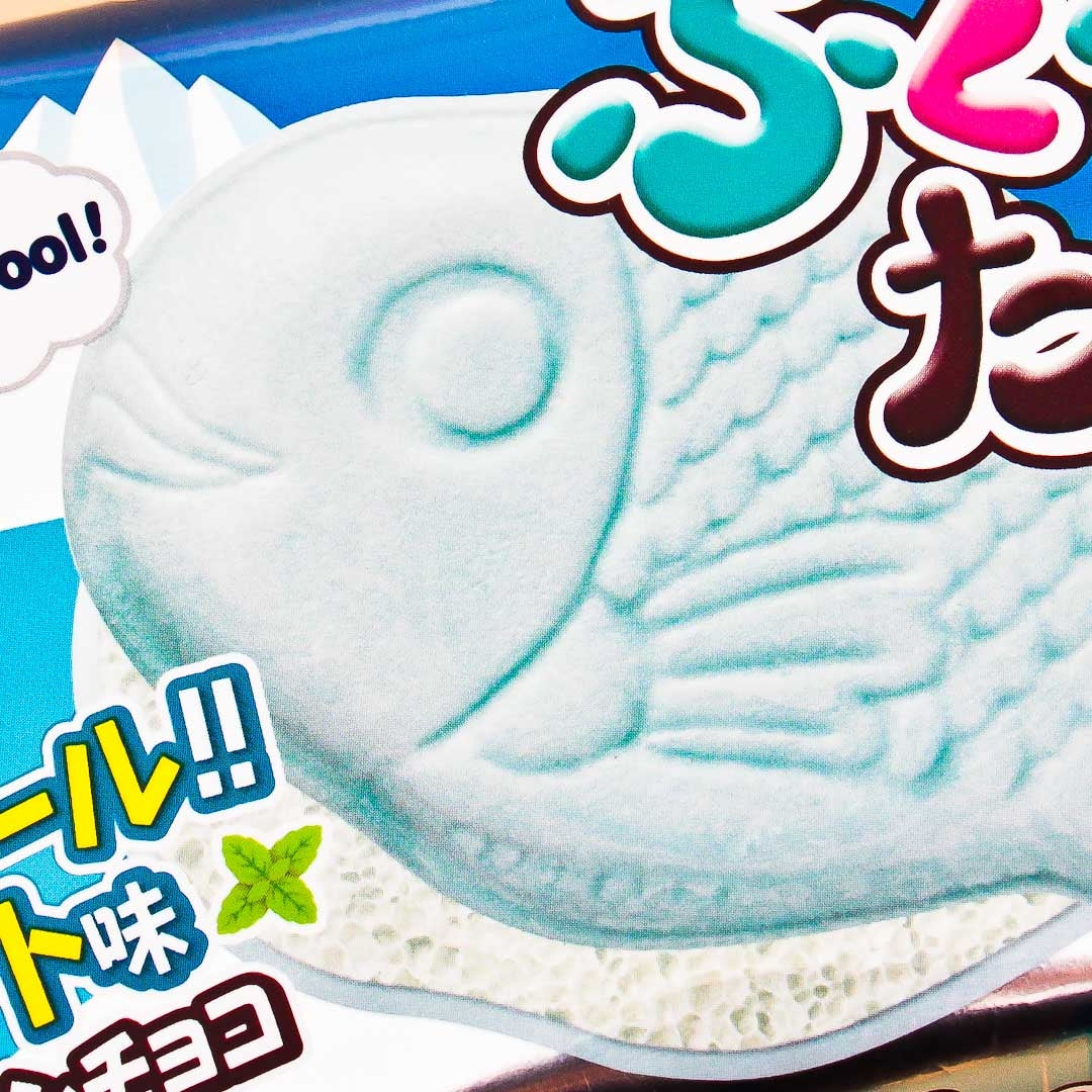 Taiyaki is a fish-shaped snack that usually has cream or red bean filling and is often a treat at festivals in Japan. Inspired by Taiyaki, Puku Puku Tai is a delicate wafer with sweet, airy chocolate filling. This special edition cool mint flavor is popular in Japan during the hot summers.