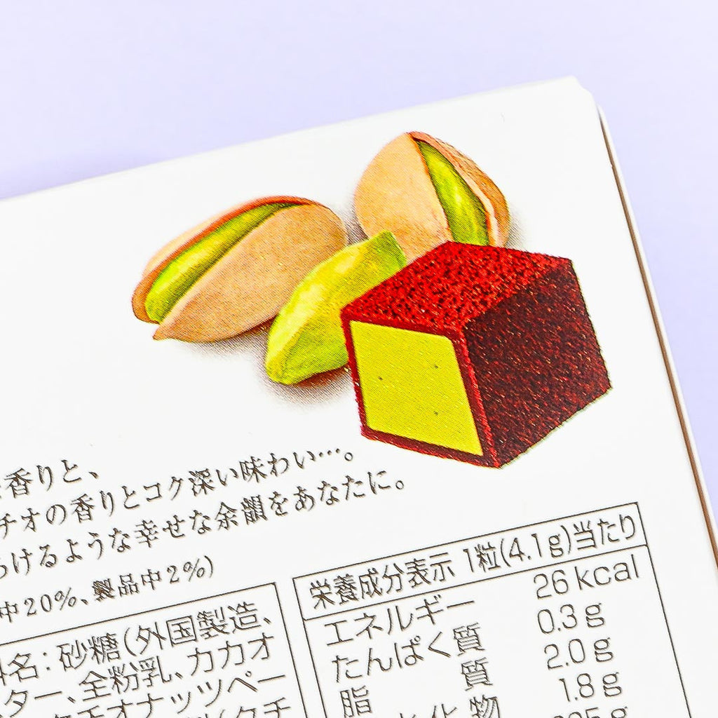 This box of creamy cube-shaped chocolates is the perfect dessert on a cold day! It's a creamy, pistachio-flavored chocolate that's coated with delicious cocoa powder. The pistachio scent and rich flavor spread gently as it melts in your mouth. This special edition flavor is made in collaboration with Japanese chef Sadaharu Aoki.