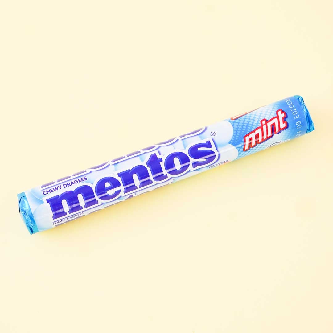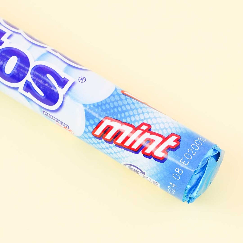 • A pack of mint-flavored sugar shell candies with soft mint candy filling