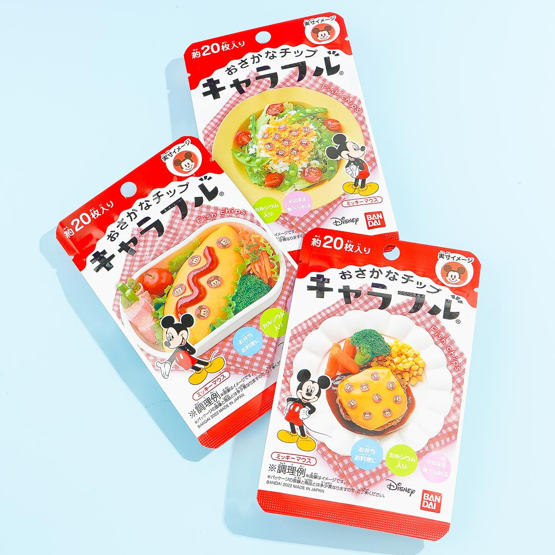 Add this topping to your bento meal to give it a cute look! The chips are made with minced fish and use only natural coloring agents for the Mickey Mouse print.
