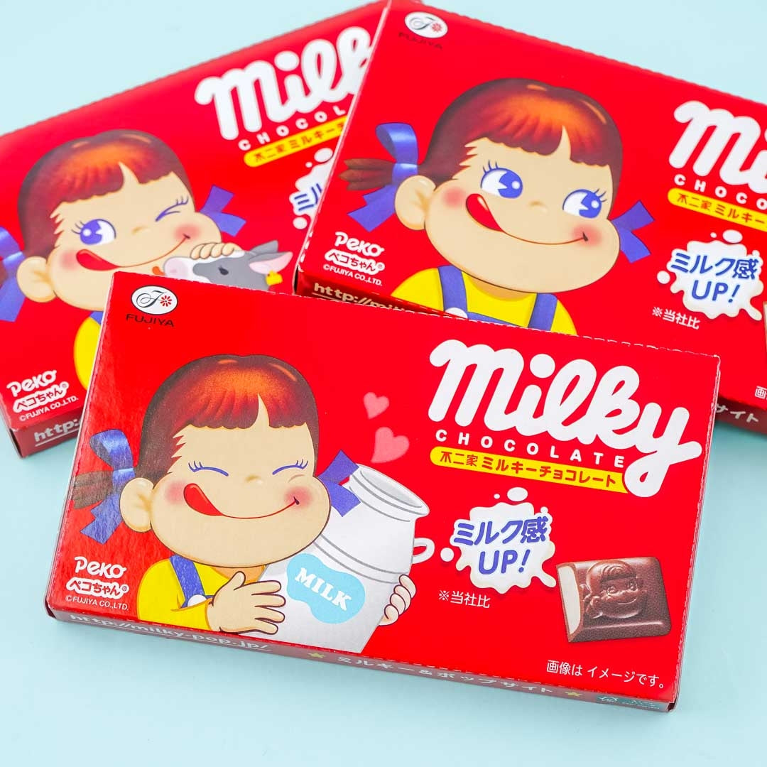 Indulge in these delicious chocolate bites filled with milk-flavored cream! Each piece also has an embossed image of Milky’s very own Peko-chan! You’ll get a box with a random design when you order.