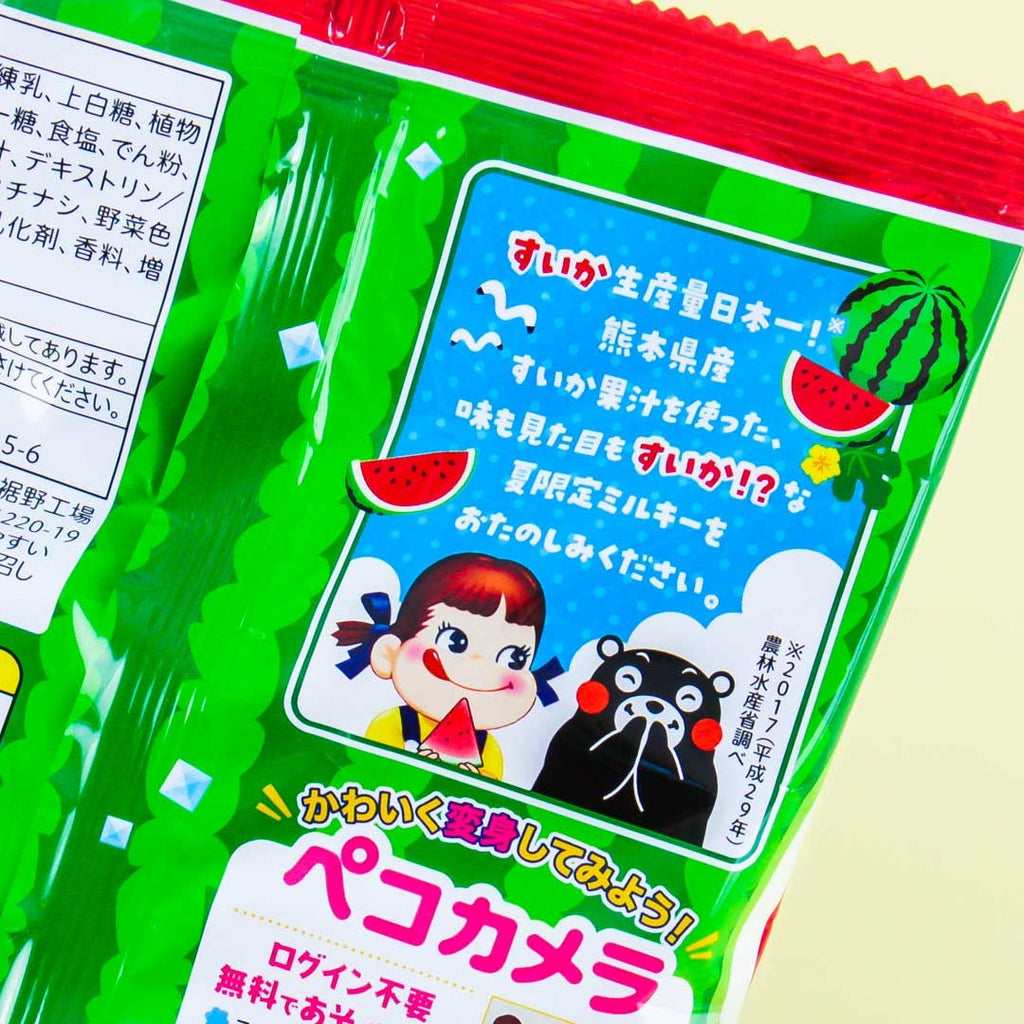 Enjoy the unique combination of sweet watermelon and salt with these candy balls! These treats are from the limited-edition collaboration between Milky Candy and Kumamon. This adorable black bear is the official mascot of Kumamoto Prefecture where the best watermelons in Japan are produced!
