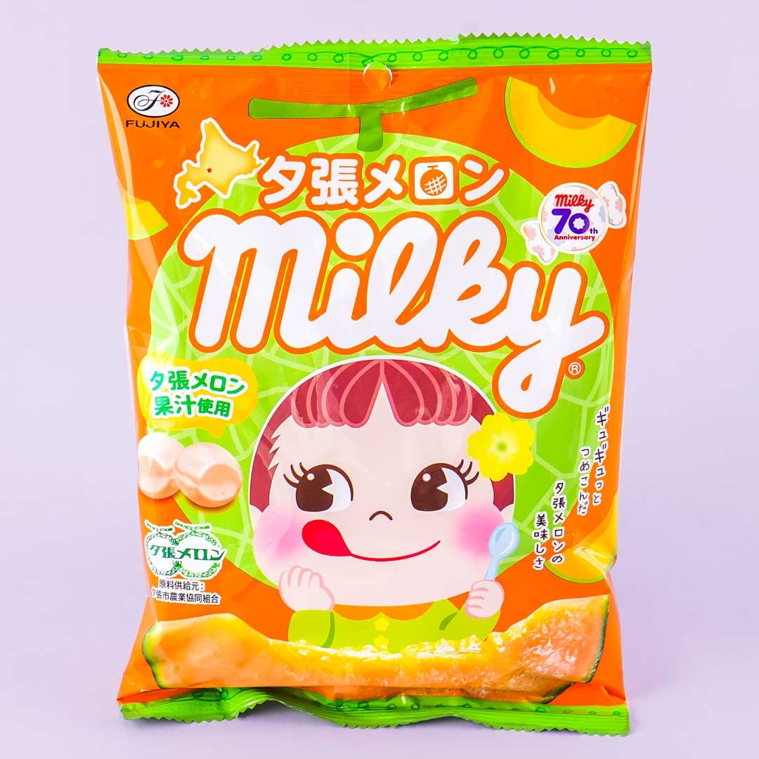 Taste the combination of sweet Yubari melons and milk in these yummy treats! These hard ound candies come in a resealable pouch with three different prints featuring Peko-chan, Milky’s official mascot. You’ll receive a random package design when you order!