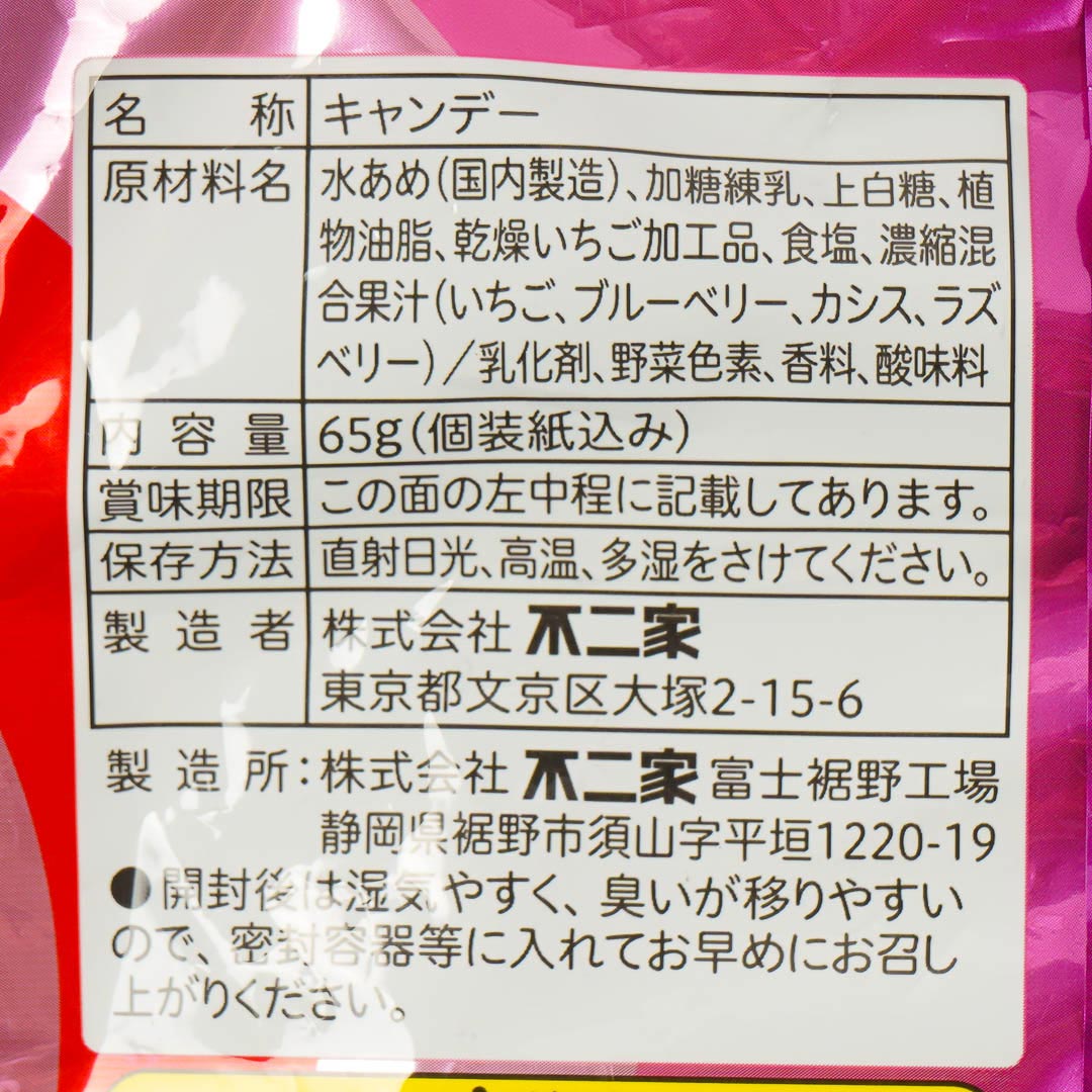 This chewy berry milk candy adds a fun twist to the classic Milky treat! It features four fruity flavors—strawberry, raspberry, blueberry, and blackcurrant. Each piece is packed real freeze-dried strawberry bits for extra flavor and texture!