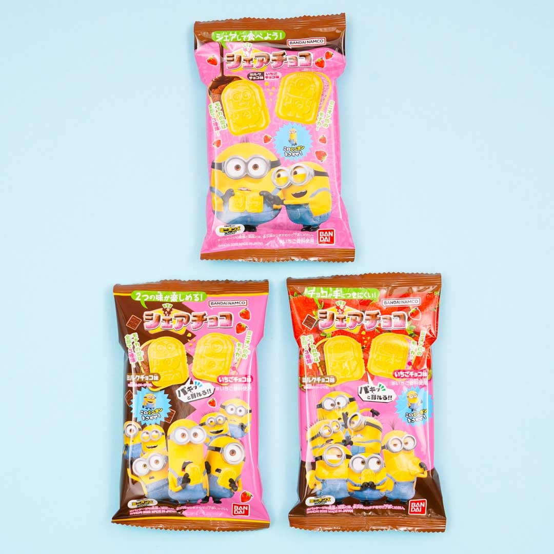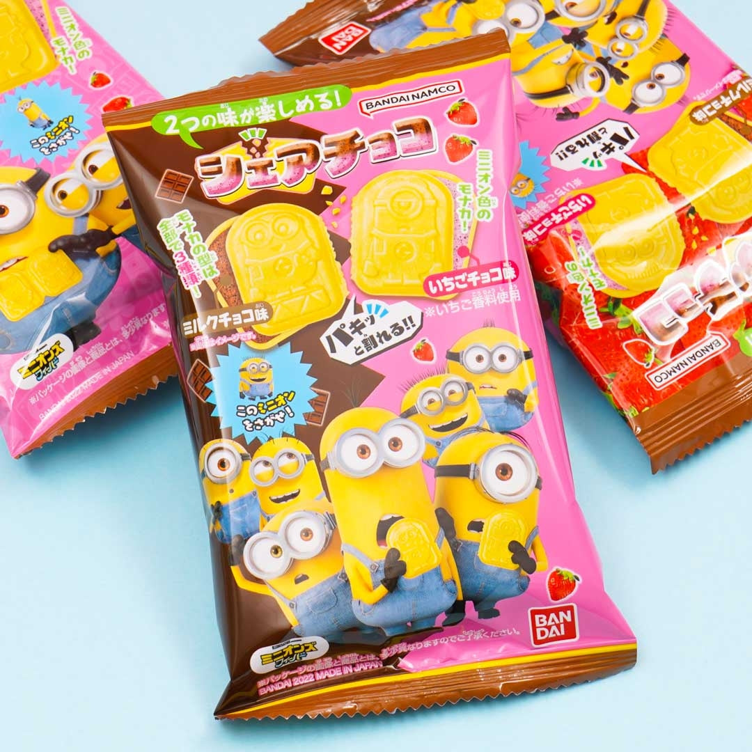 This pack of Minion-shaped monaka or Japanese wafer treats is perfect for snacking! Each wafer treat is filled with air-in chocolate. Enjoy the two different flavors in the pack - mellow milk chocolate and refreshing strawberry. You'll get random minion wafer designs and random packaging designs selected from a set of 3 when you order.