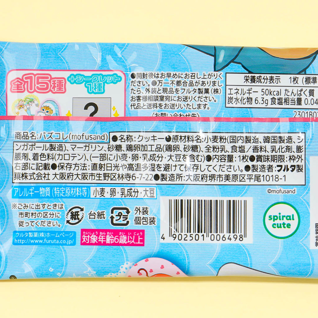 Have fun snacking on this delicious egg cookie while collecting cute stickers! This pack includes a die-cut sticker featuring the Mofusand cats. There are fifteen regular types and one secret type of stickers to collect!