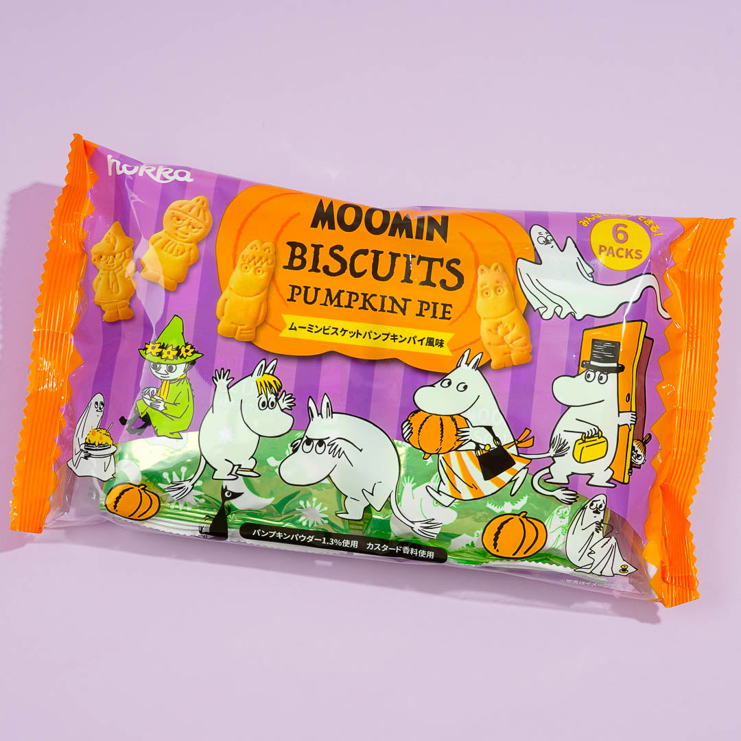 Munch on this pack of pumpkin pie-flavored biscuits while trick-or-treating with your friends. Each biscuit is shaped like a Moomin character! This limited-edition pack of goodies also features prints of Moomin characters harvesting pumpkins.