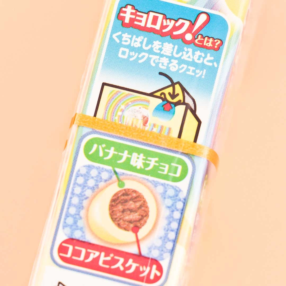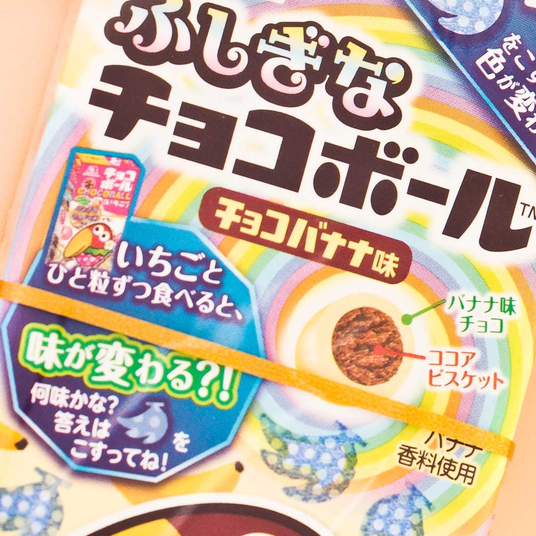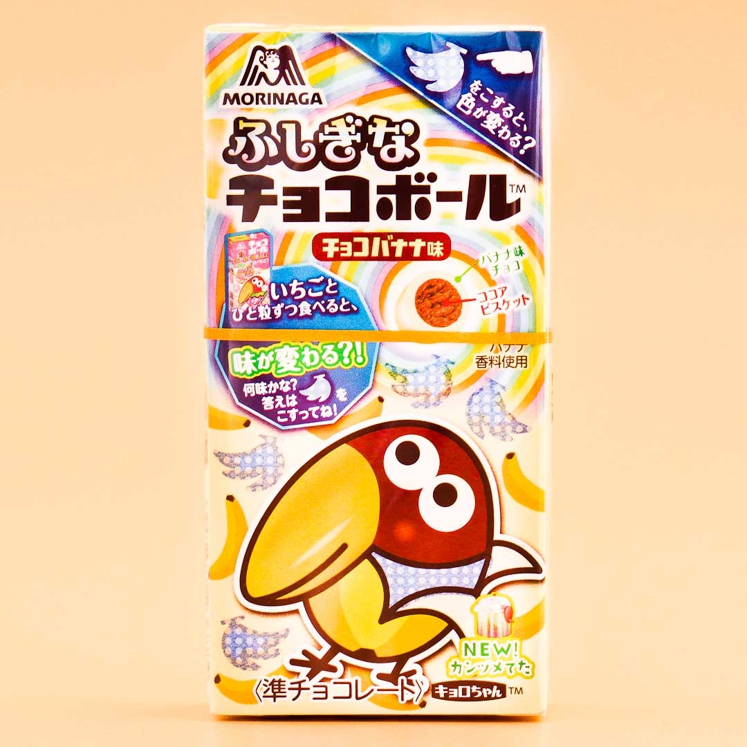 Kyoro-chan has been Chocoball's mascot since 1967, and the box's beak-shaped opening is inspired by the beloved bird. These Chocoballs are coated in delicious banana chocolate and have a crunchy, cocoa-flavored cookie center. The closable box makes these easy to take with you and share with friends.