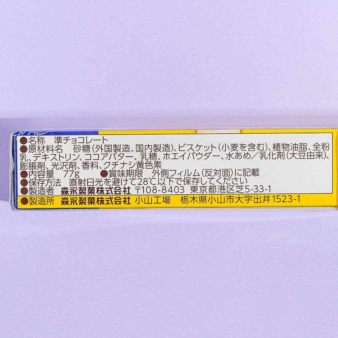 Morinaga collaborated with cream puff specialty store Beard Papa to give you a special chocolate ball packed with multiple flavors and textures! This bite-sized Chocoball features a vanilla-scented biscuit coated with yummy white chocolate. The packaging features Kyoro-chan sitting on a cream puff pastry!
