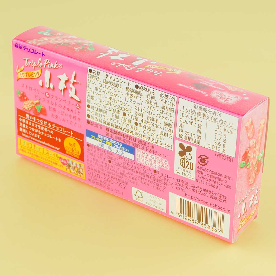Share these mini packs of pink twig-shaped or “koeda” snacks with your besties! Each piece is packed with rice puffs and has a sweet and sour berry chocolate coating.