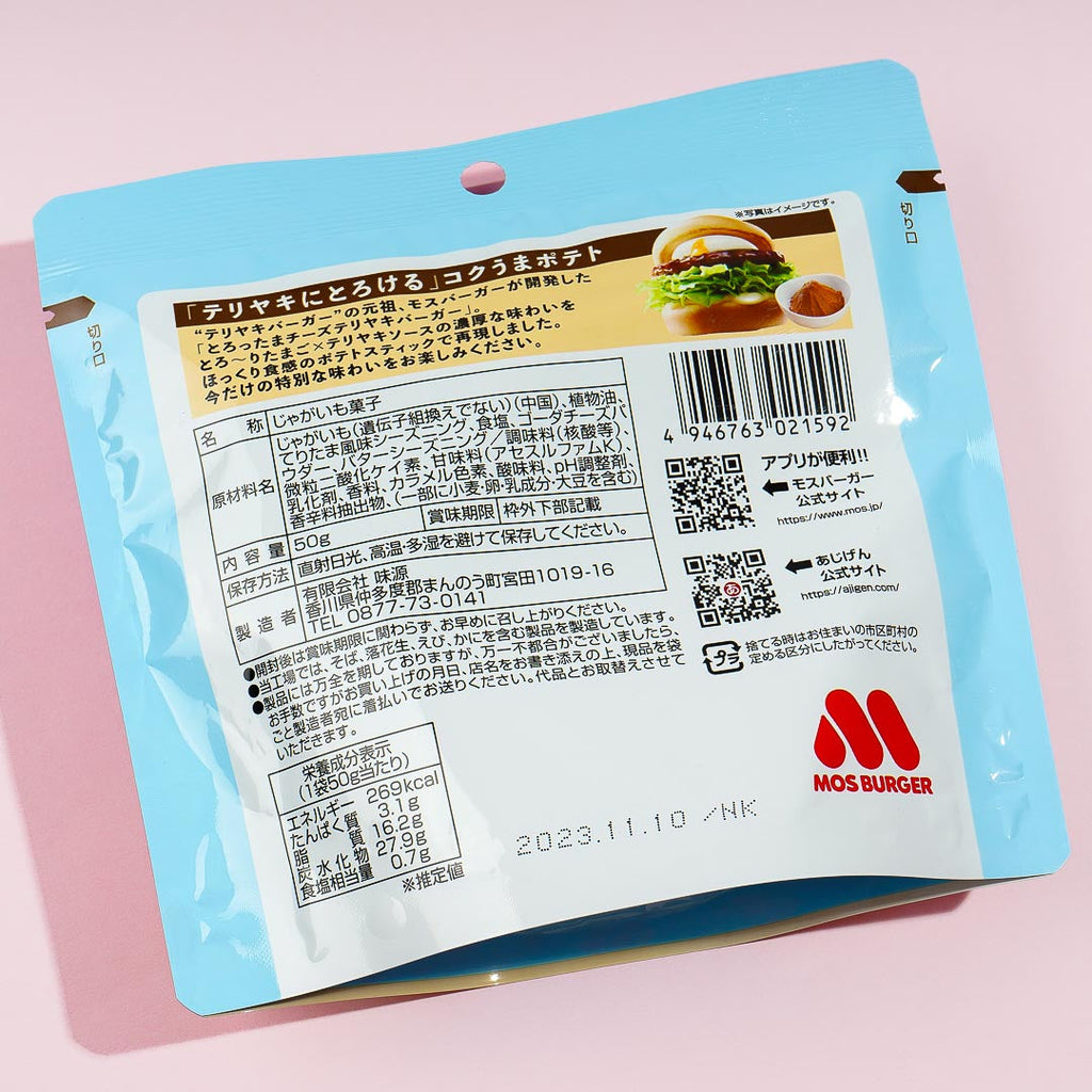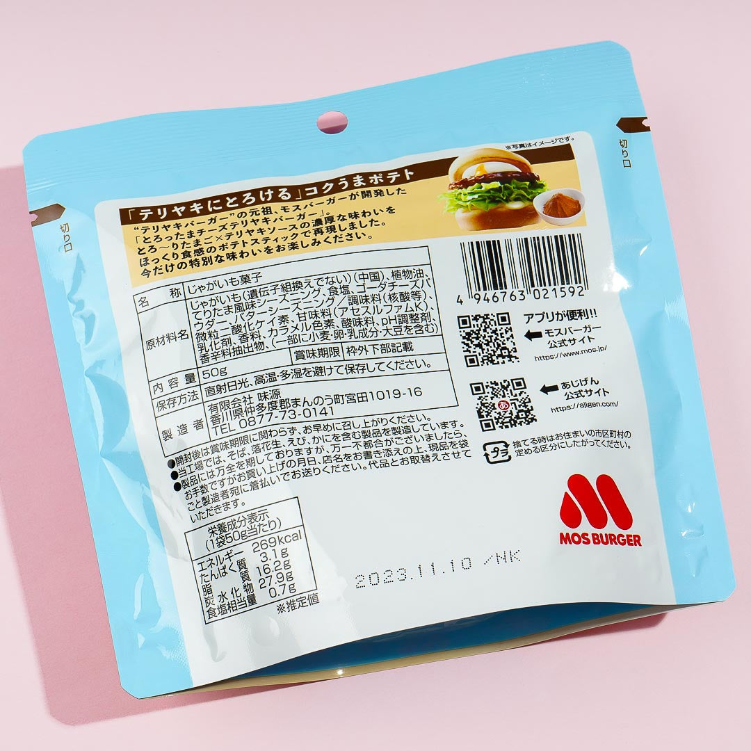 Enjoy this super tasty and crunchy potato snack with your favorite cold drink! It's shaped like French fries and is coated with teriyaki and cheese flavors to recreate the taste of Mos Burger's Torottama Cheese Teriyaki Burger.