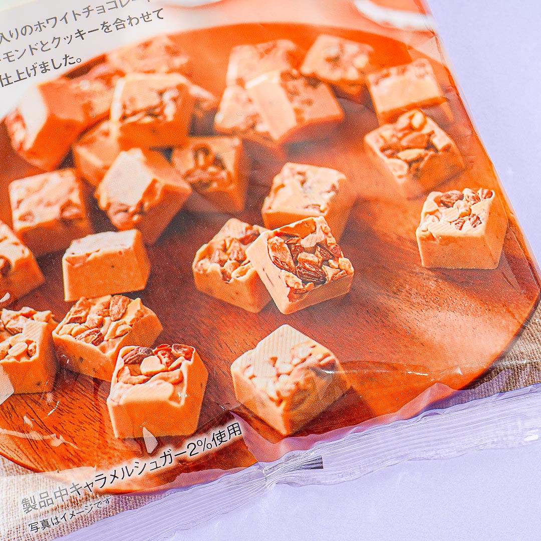 Indulge in this special pack of Florentine-style chocolate. Each individually wrapped white chocolate piece is made with caramel sugar. They're also mixed with bits of crushed almonds and cookies!