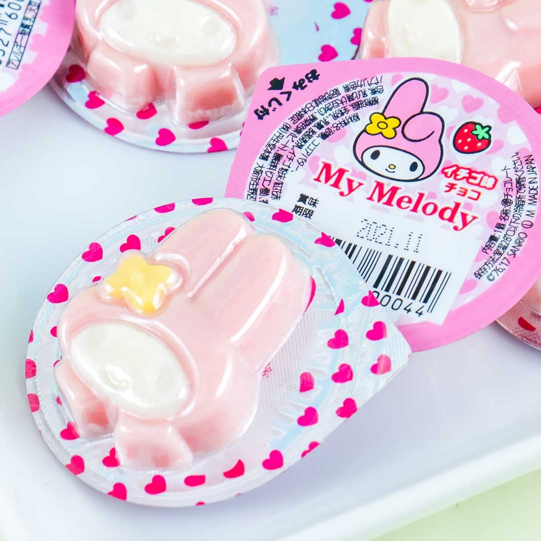 Bite into this tasty piece of strawberry-flavored chocolate! This delicious treat is shaped like My Melody. Surprise yourself with a random design when you order!