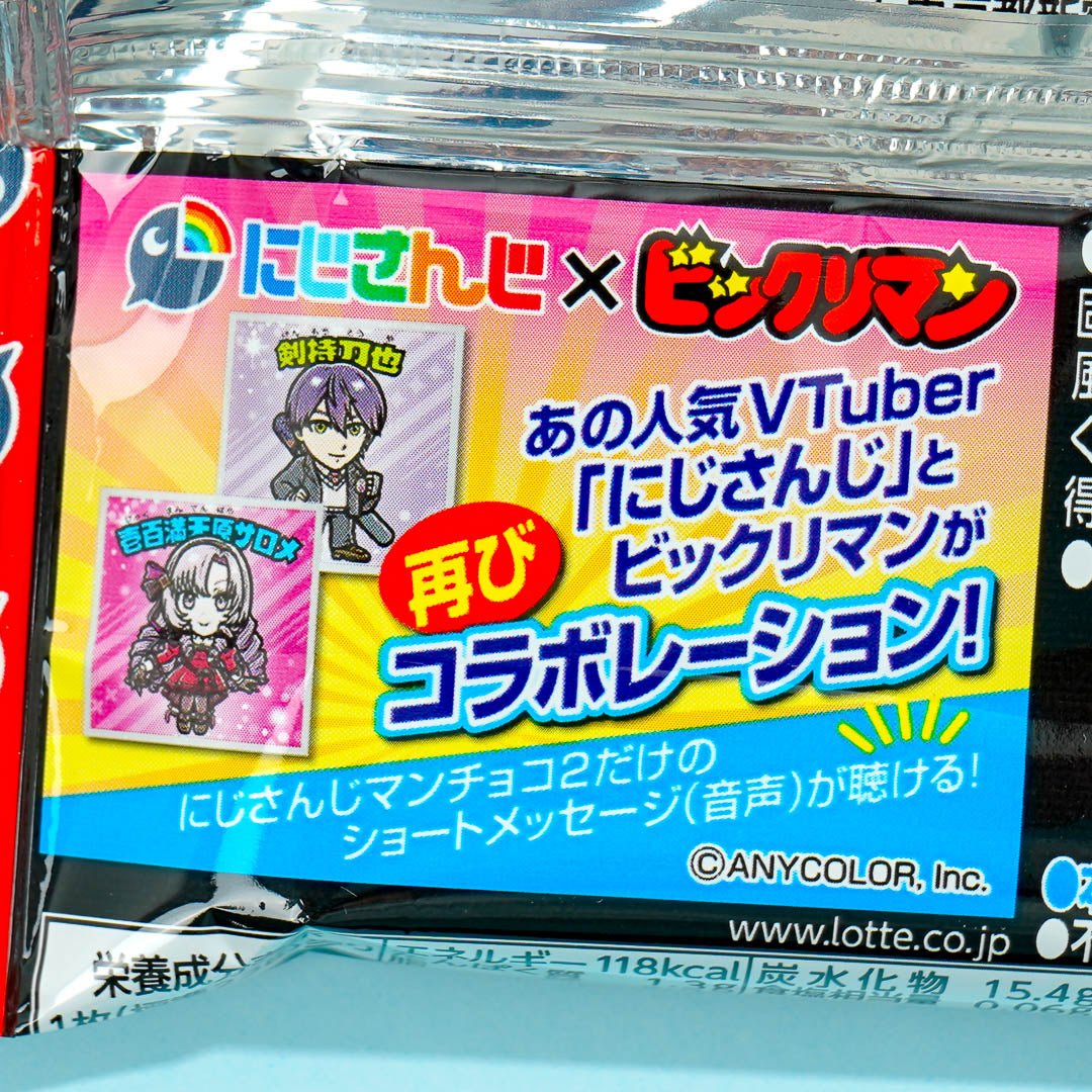 Add this chocolate wafer pack to your snack haul! It features prints of the Vtubers from Nijisanji. This wafer pack comes with a collectible Nijisanji sticker. Surprise yourself with a random sticker from a set of 24 designs!