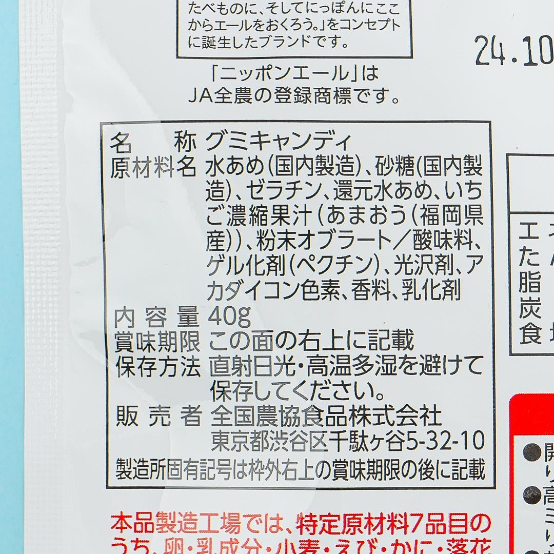 This pack of gummies is made with the juice of the freshest Amaou strawberries harvested from Fukuoka Prefecture! Have fun trying out these sweet round candies with your besties! The squishy treats were created for the “Nippon Ale Project” which supports local production of agricultural products across Japan!