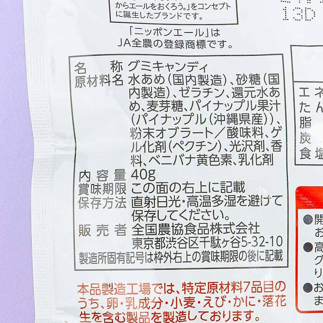 Feel instantly refreshed by trying out these round gummies that are packed with fresh fruit juice! These are made with pineapples harvested from Okinawa Prefecture. The special gummy pack is part of the “Nippon Ale Project” which supports local production of agricultural products across Japan!