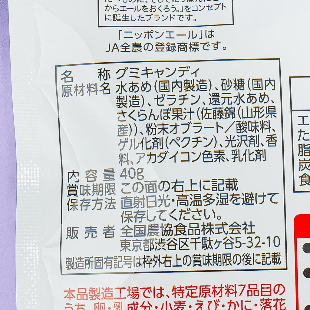 Savor the taste of the famous Sato Nishiki cherries harvested from Yamagata Prefecture when you try these squishy treats! Each round-shaped gummy is made from 100% real cherry juice. These special candies are part of the “Nippon Ale Project” which supports local production of agricultural products across Japan!