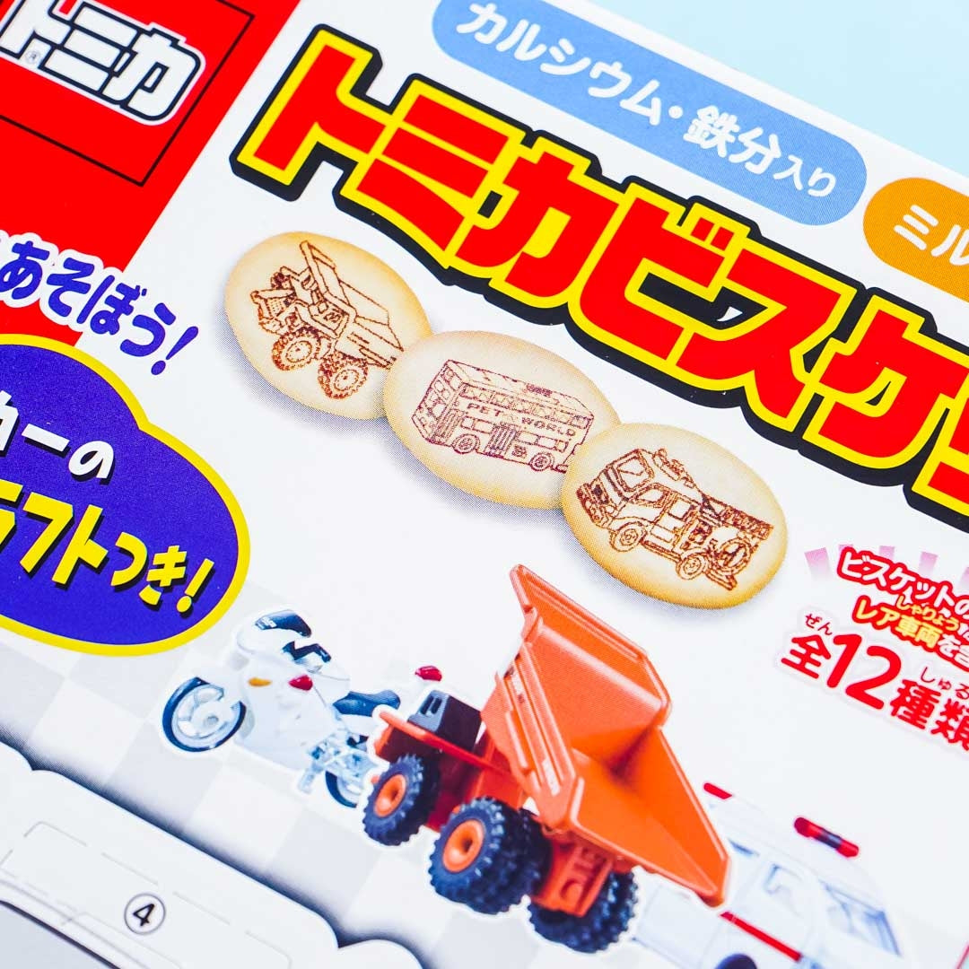 Have a blast as you snack on these yummy milk biscuits fortified with calcium and iron! These crispy treats have prints of the famous Tomica toy cars. There are twelve different designs including one with a rare-type vehicle! You can also create your own DIY car model with the provided pattern on the biscuit box.