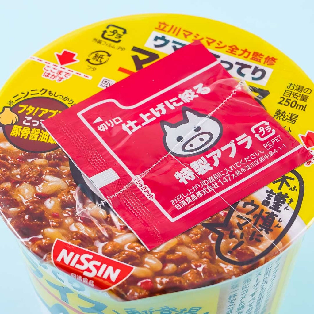 • An instant rice cup meal made of rice, pork bone soy sauce-flavored soup, minced pork, garlic, and chili peppers