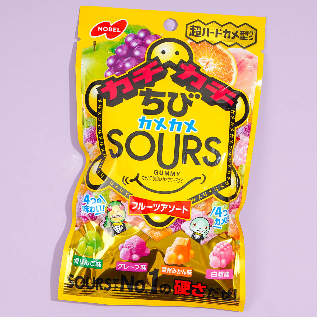 This pack of gummies has the hardest texture among all of Nobel Sours! Enjoy nibbling on these turtle-shaped gummies. You can enjoy four different fruit flavors with this pack of gummy candies - green apple, grape, mandarin orange, and peach.