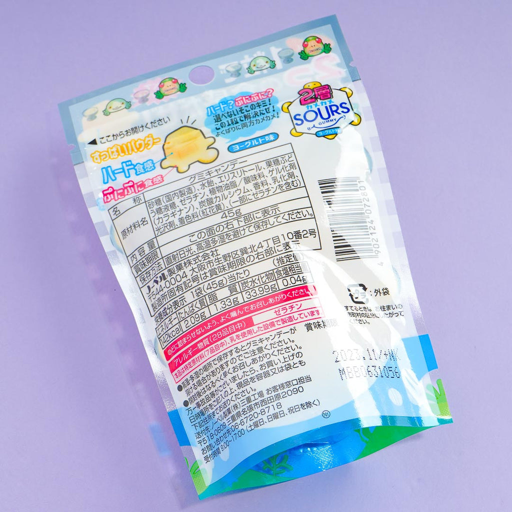 Chew on this pack of delicious yogurt-flavored gummy candies! The cute, turtle-shaped treats have two layers — a hard shell with sour powder coating and a soft, squishy center. It also comes in a resealable pack for easy storage.
