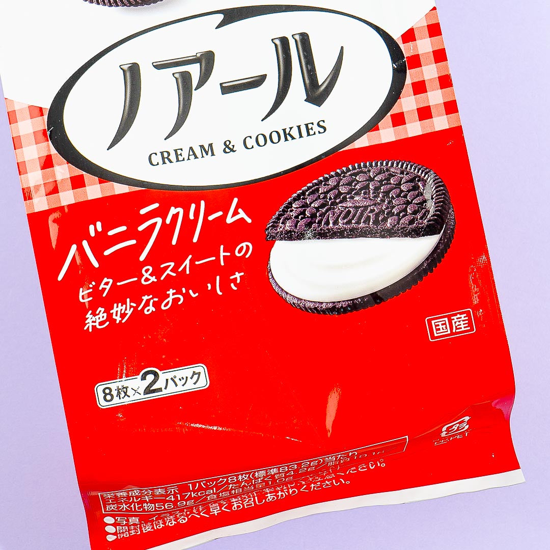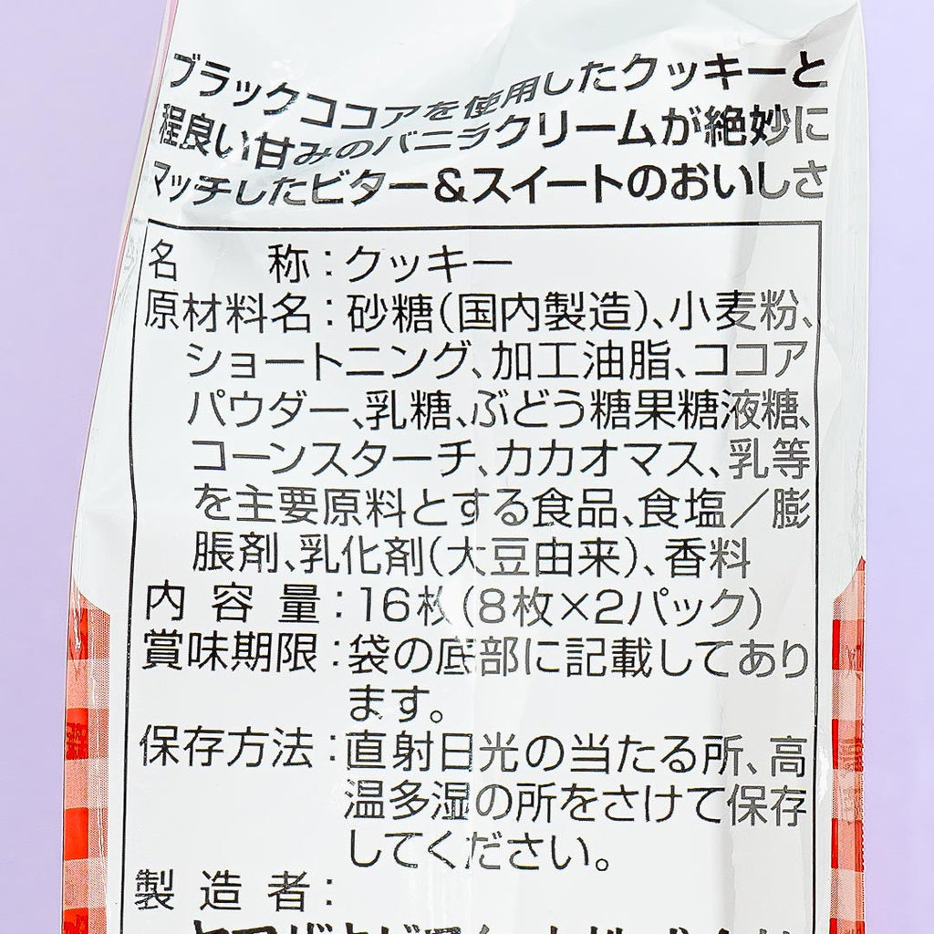 Indulge in these bittersweet sandwich cookies made of black cocoa! Each piece is generously filled at the center with sweet vanilla cream. You can share these treats with friends and family as they come in a special “stand pack” which is a pair of cookie bags containing nine pieces each.