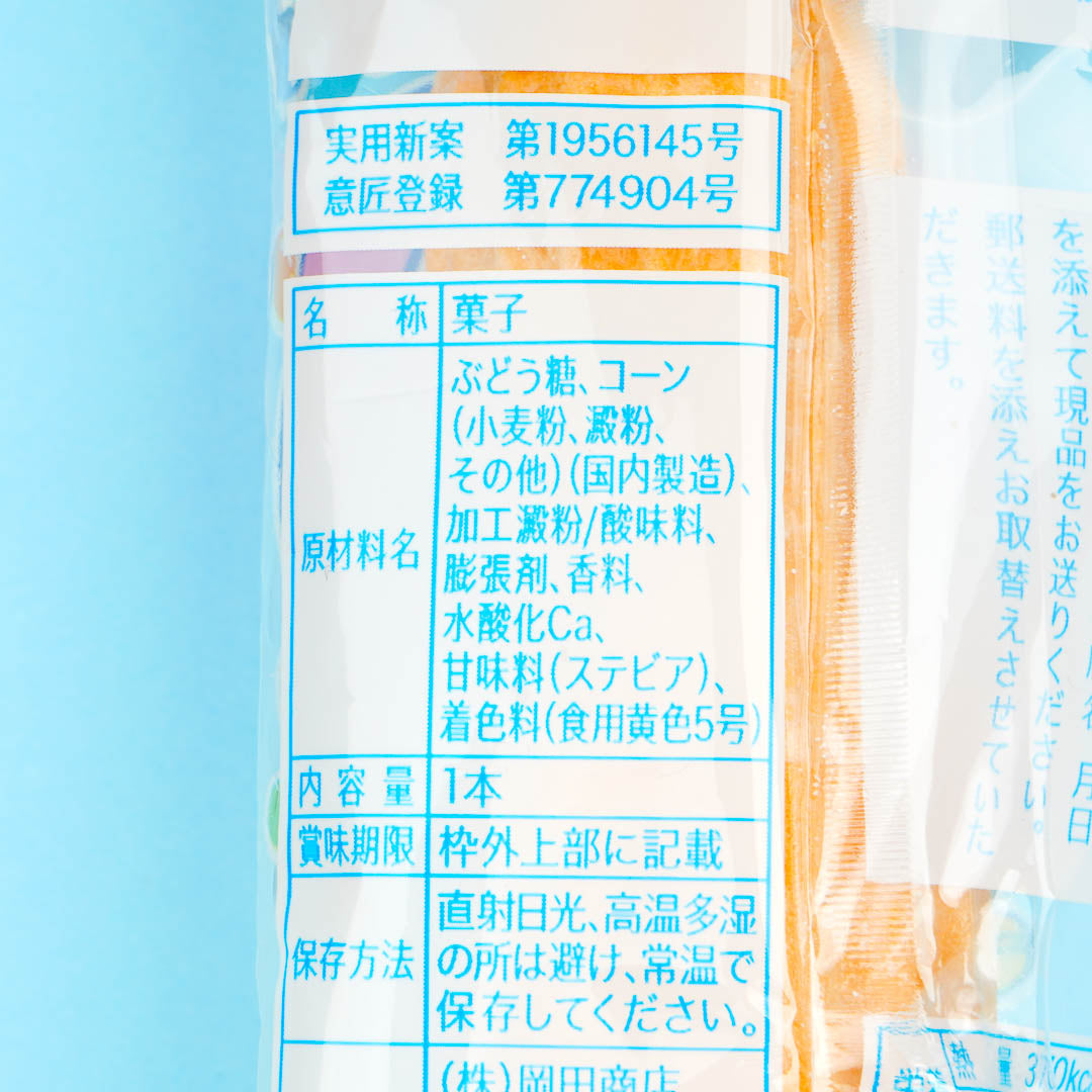 Enjoy snacking on this tasty bottle-shaped monaka wafer! Inside the wafer treat is delicious powdered ramune ( a popular Japanese carbonated soft drink). You can either eat the wafer as is or you can insert a straw into the bottom and suck out the powder first. Yum!