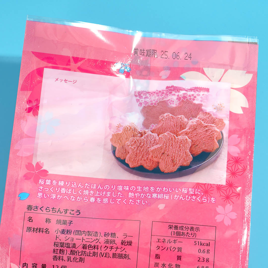 Pair these yummy sakura cookies with your favorite cup of tea! Each piece is made with cherry-colored dough kneaded with sakura leaf chips. Enjoy the floral flavor of these spring-time cookies from Japan!