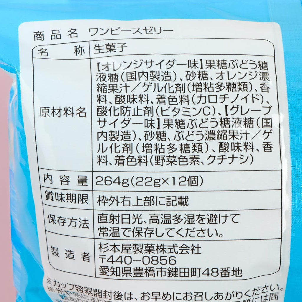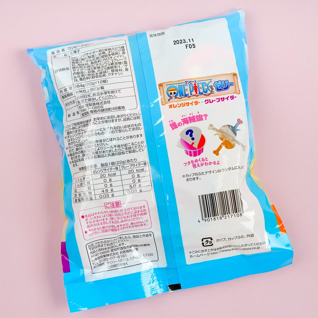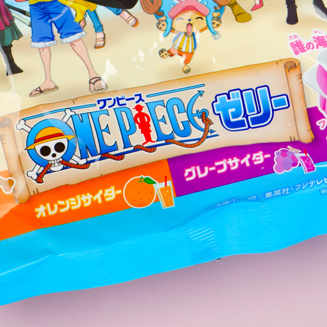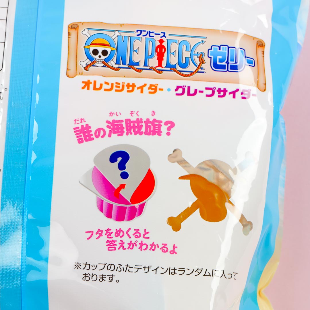 Enjoy this sweet treat that features the cool characters from One Piece! It's a jelly snack that comes in two flavors — orange cider and grape cider. You can play with your friends as you guess the mystery character design under each lid!