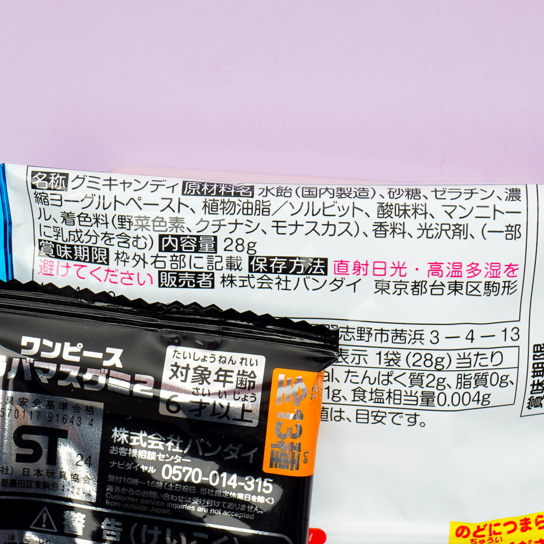 Make sure you have this pack of mixed fruit-flavored gummies while watching your favorite anime series. It features prints of One Piece characters! This gummy pack also comes with a collectible One Piece charm. Surprise yourself with a random charm from set of 13 different designs when you order.