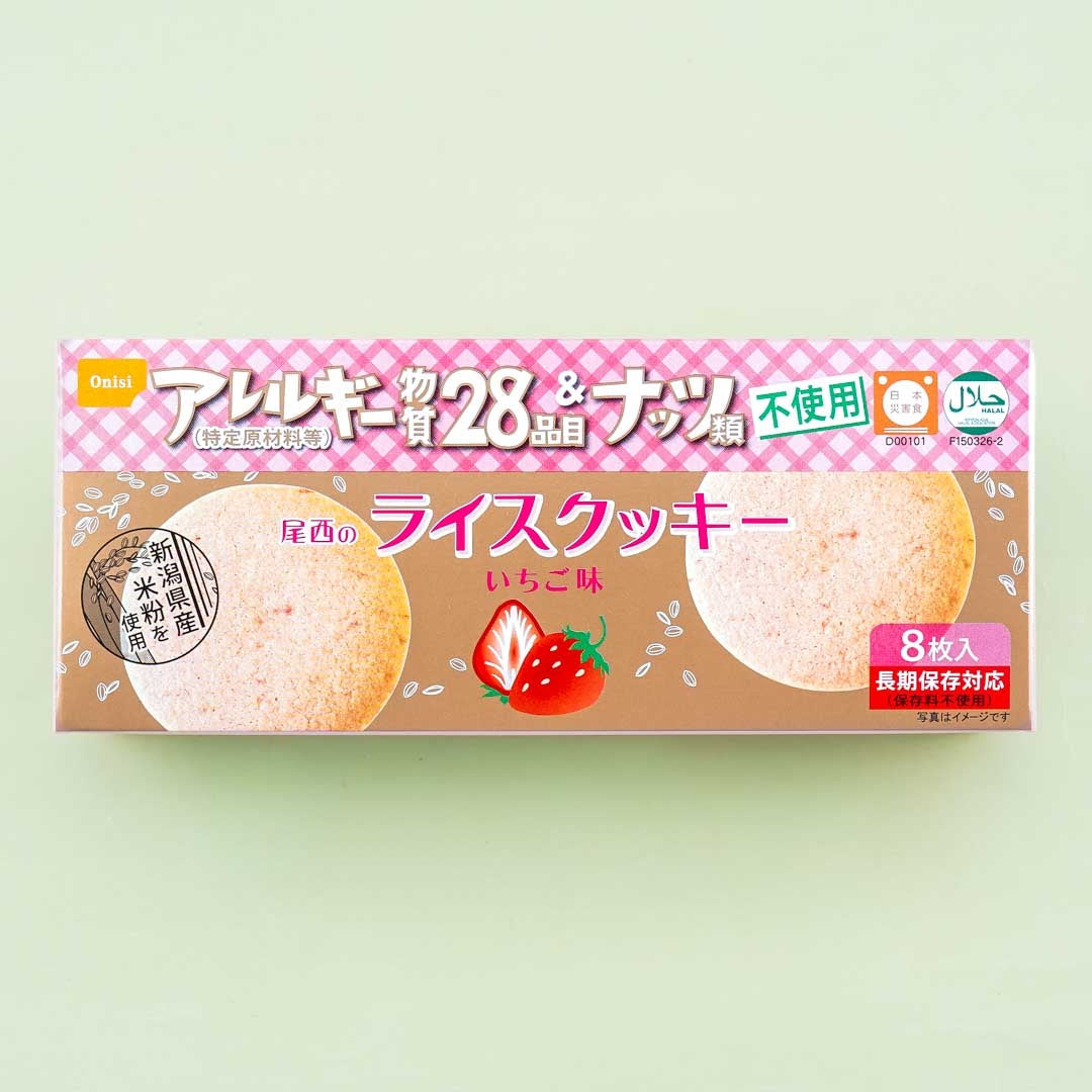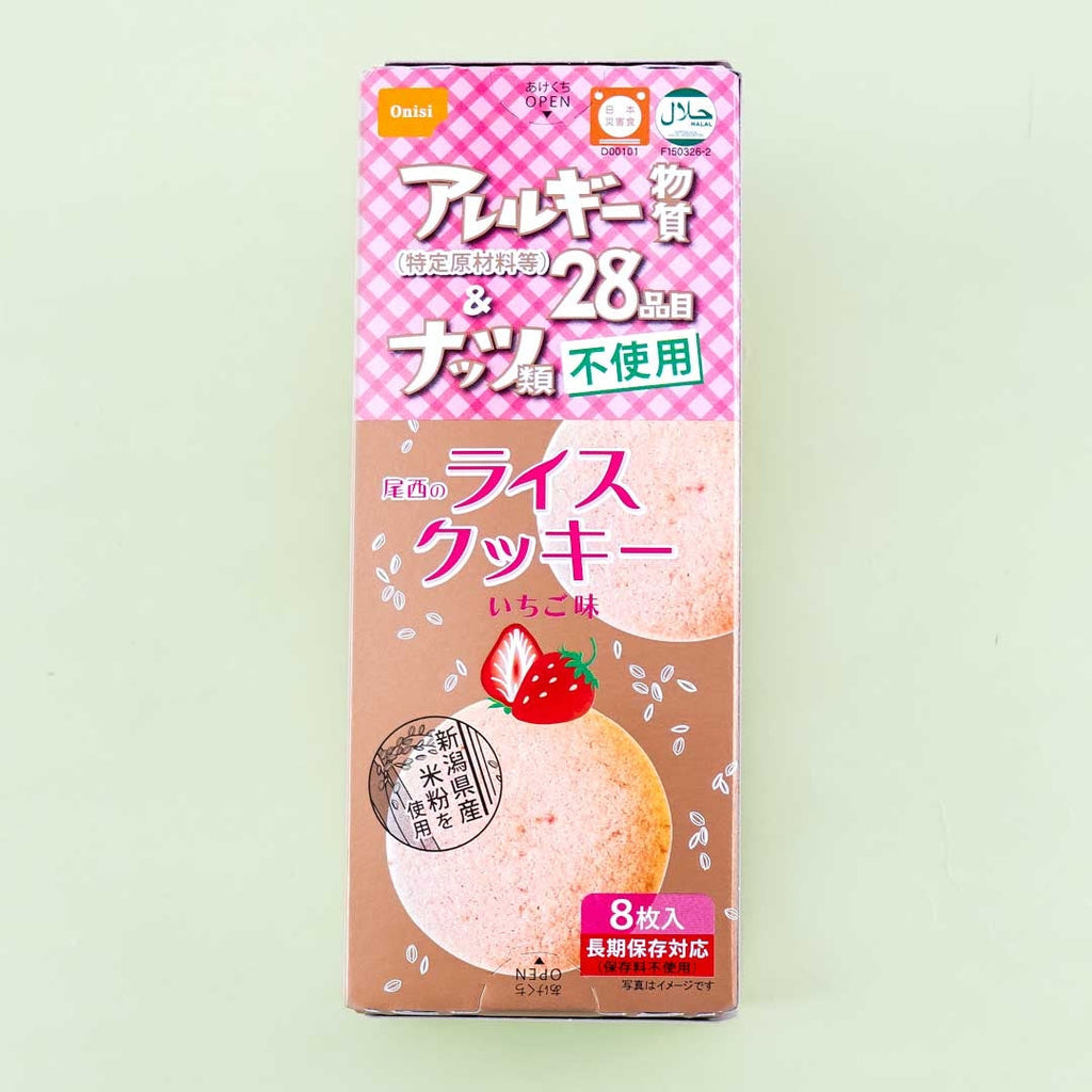 This box of cookies is made with delicious rice flour. Each piece has a gentle strawberry flavor. Enjoy snacking on these tasty cookie treats!